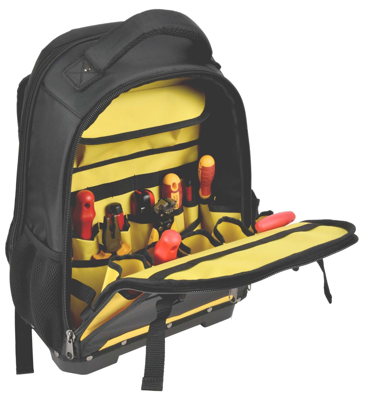 Рюкзак монтажника с пластиковым дном BP-12 IEK для удобного и комфортного перемещения инструмента к месту выполнения работ. Рюкзак выполнен из полиэстера марки Оксфорд 1680, обладающей высокими водо-и грязеотталкивающими свойствами. Мягкие анатомические вставки на спинке и лямках рюкзака для комфорта. Усиленная ручка для переноски, способная выдержать большой вес инструмента с тканевой застежкой, уменьшающей давление на руку (до 25 кг) Светоотражающие элементы на внешней стороне рюкзака для безопасности при движении в темное время суток. Жесткое масло- и водостойкое дно усиленной конструкции, позволяет выдерживать значительные ударные нагрузки. Просторное внутреннее пространство с карманами для инструментов. В ассортименте IEK есть полезный аксессуар – вкладыш-органайзер BG-08, позволяющий хранить инструмент в образцовом порядке и обеспечивает легкий доступ к самому необходимому.