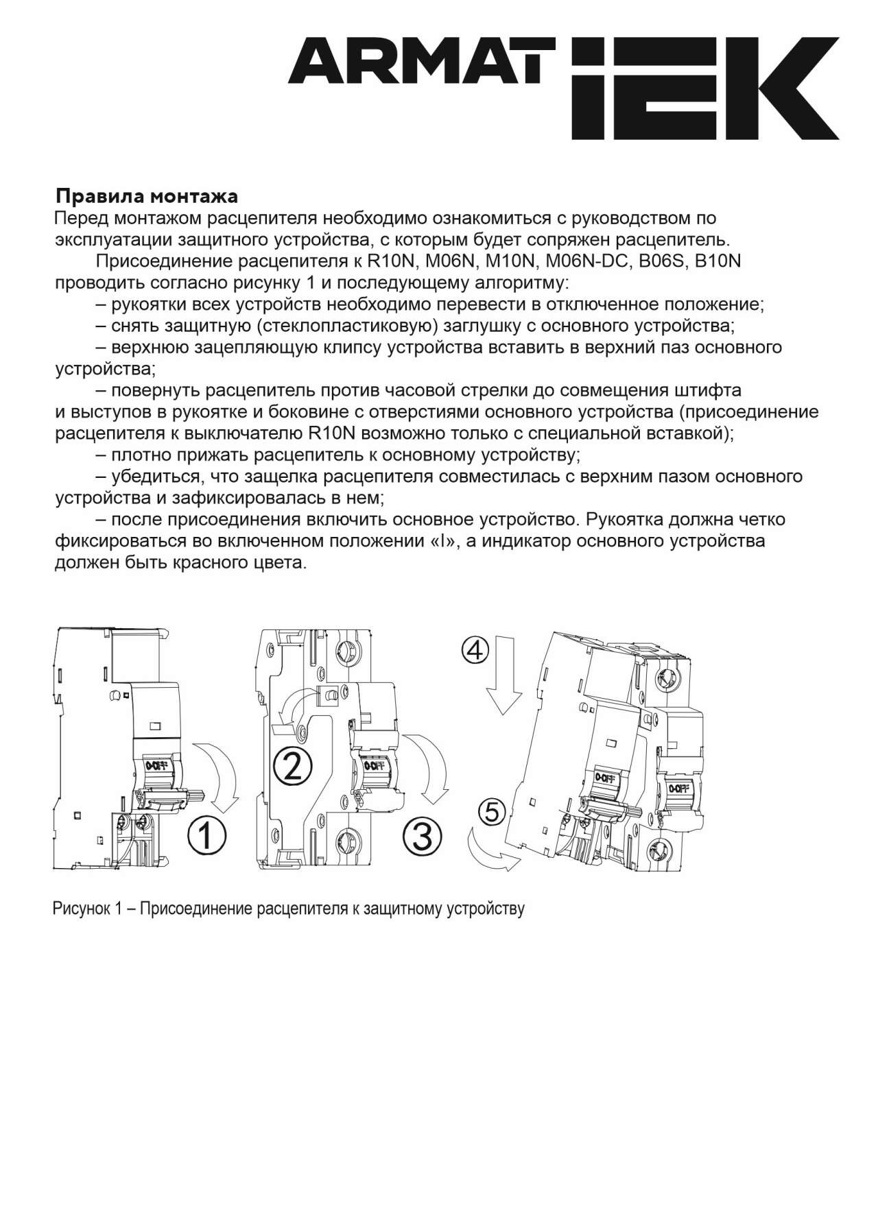 - Безвинтовое крепление к автоматическим выключателям M06N и M10N ARMAT.