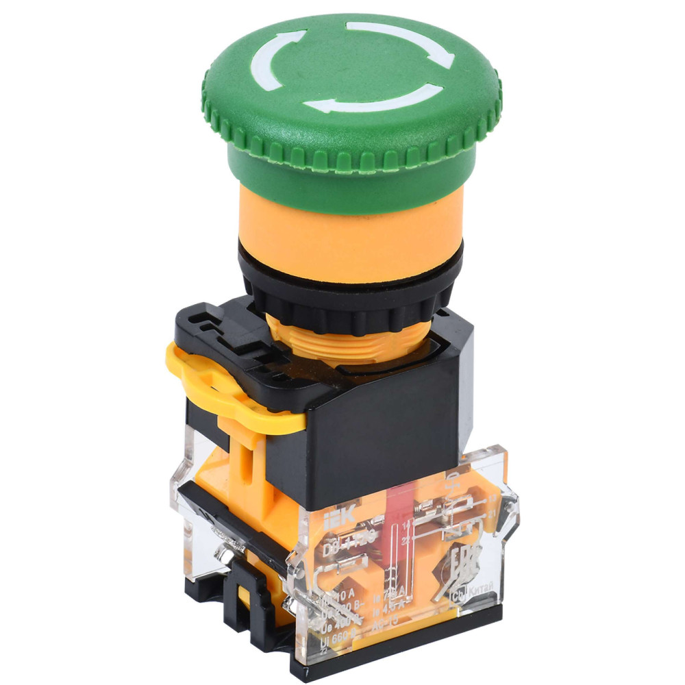 ОформитьКнопка D8-11ZS "Грибок" d=22мм 1NO+1NC поворотная с фиксацией зеленая IEK