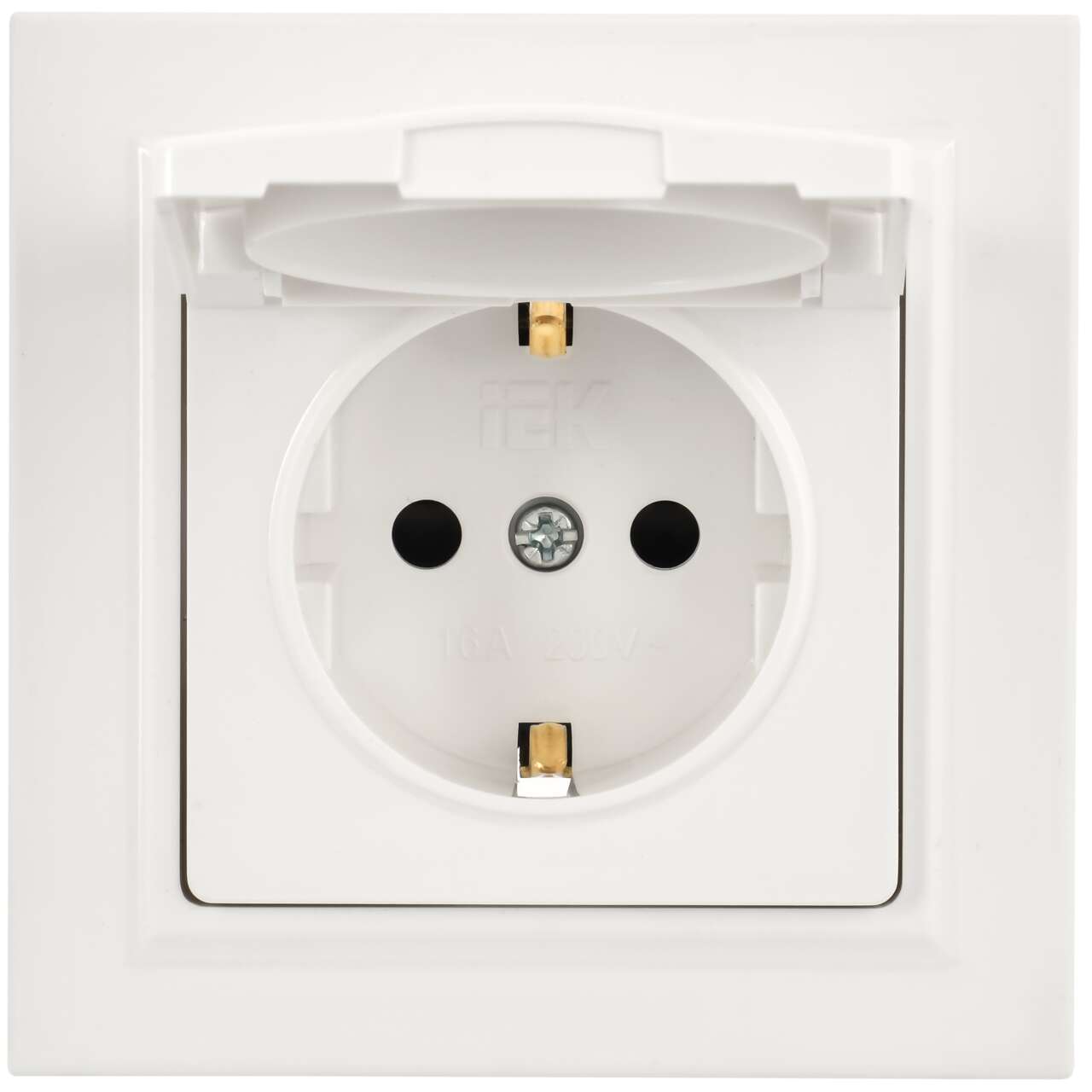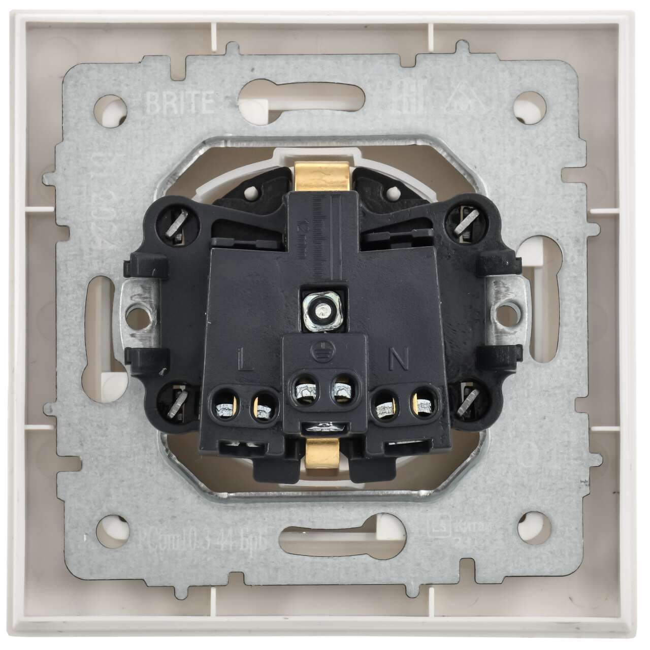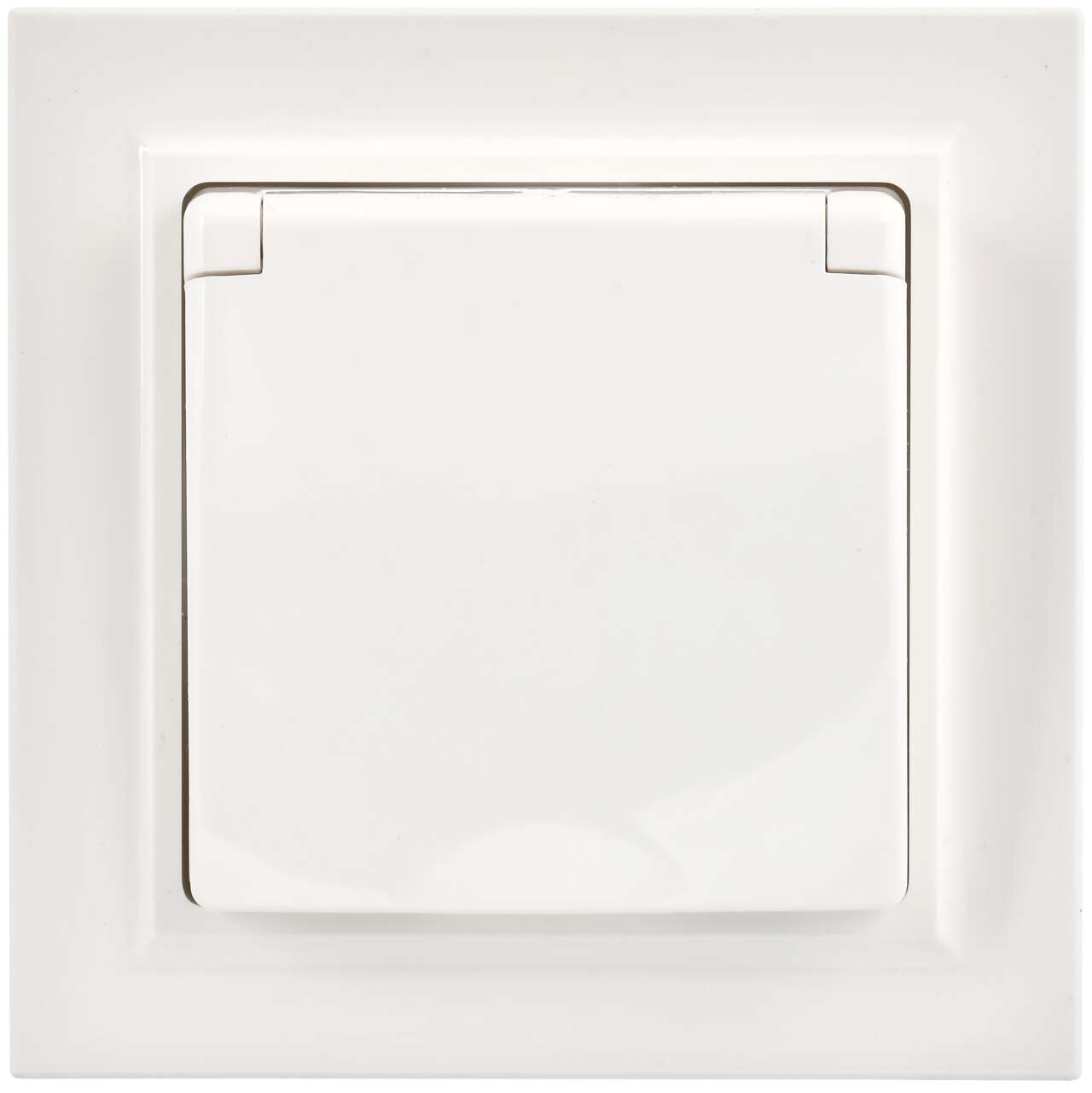 ОформитьBRITE Розетка 1-местная с заземлением с защитными шторками и крышкой 16А IP44 в сборе РСбш10-3-44-БрБ белый