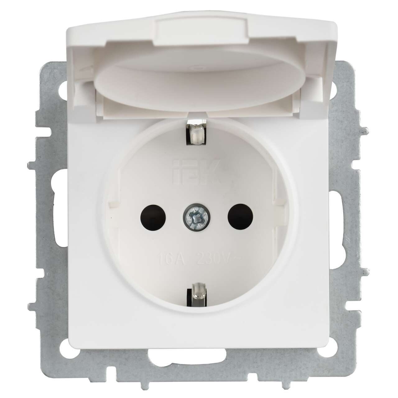 ОформитьBRITE Розетка 1-местная с заземлением с защитными шторками и крышкой 16А IP20 РСбш10-3-БрАБ арктический белый IEK