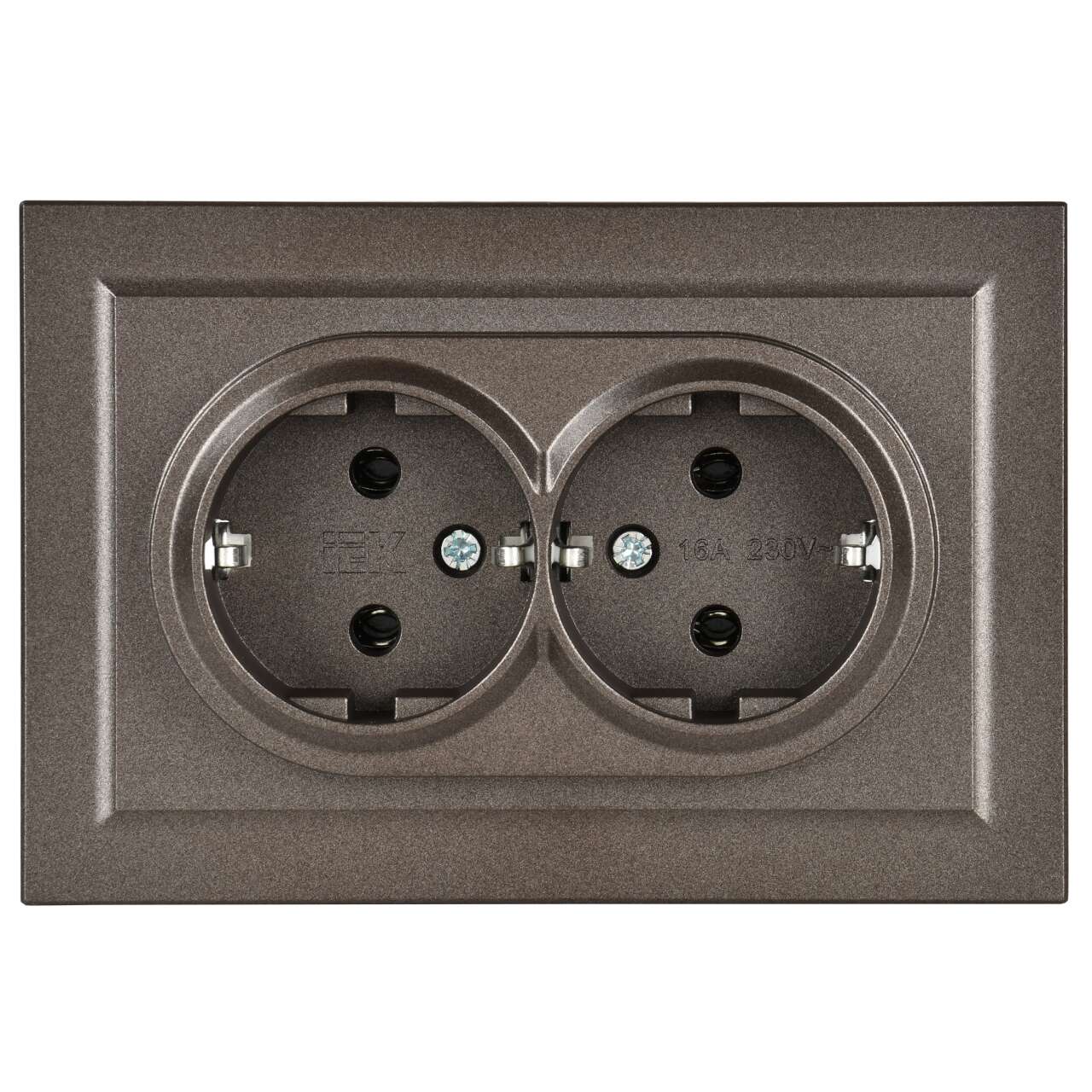 ОформитьBRITE Розетка 2-местная с заземлением без защитных шторок 16А в сборе РС12-3-БрТБ темная бронза IEK