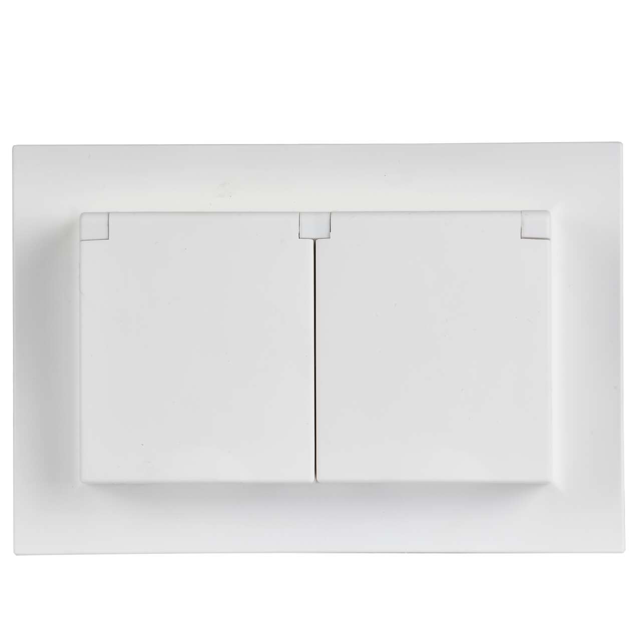 ОформитьBRITE Розетка 2-местная с заземлением с защитными шторками и крышкой 16А в сборе IP44 РСбш12-3-44-БрАБ арктический белый IEK