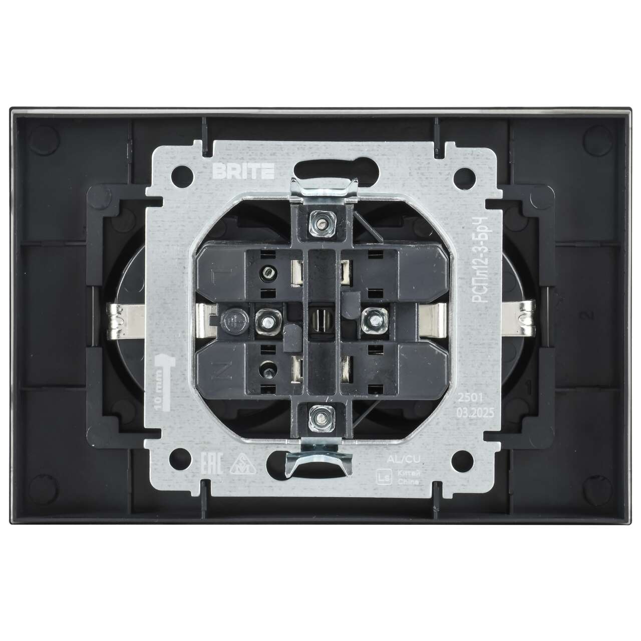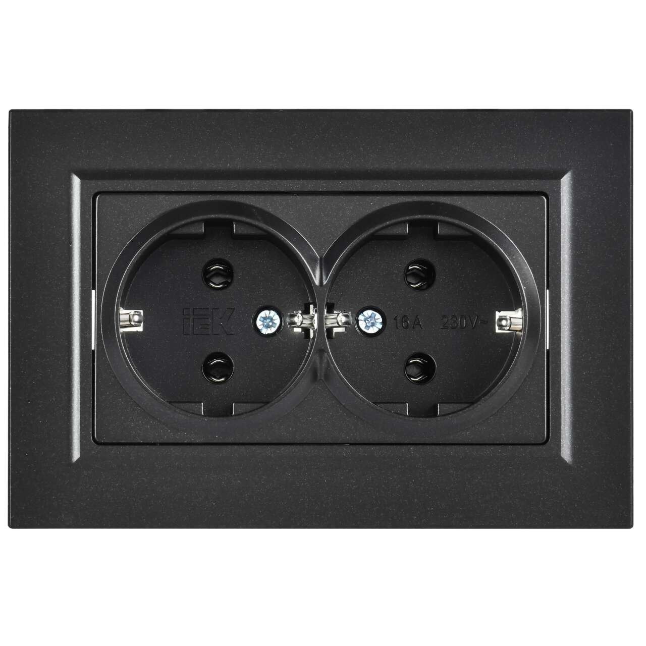 ОформитьBRITE Розетка 2-местная с заземлением без защитных шторок плоская 16А в сборе РСПл12-3-БрЧ черный IEK