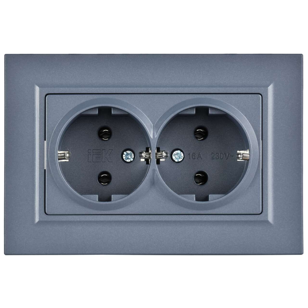ОформитьBRITE Розетка 2-местная с заземлением без защитных шторок плоская 16А в сборе РСПл12-3-БрМ маренго IEK