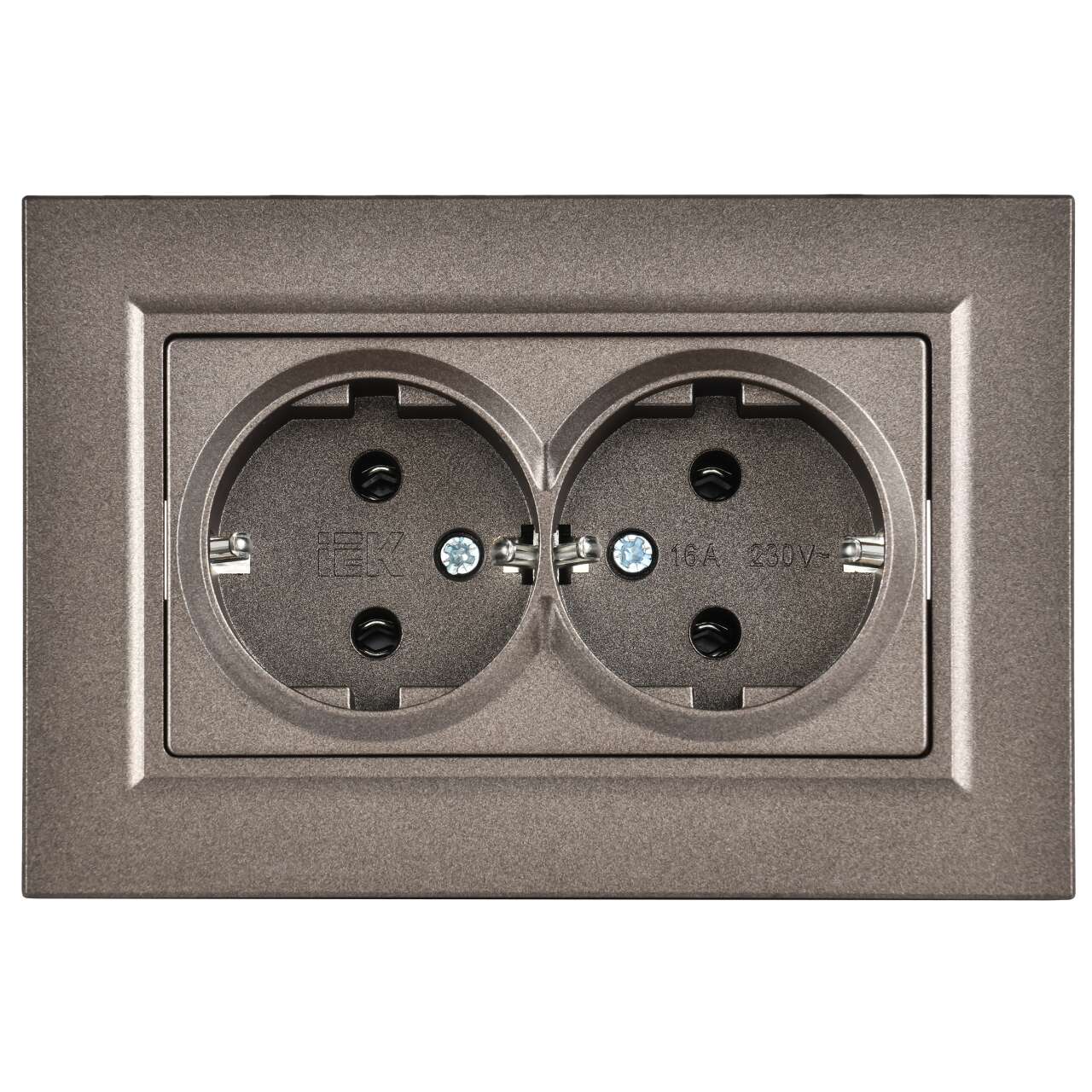 ОформитьBRITE Розетка 2-местная с заземлением без защитных шторок плоская 16А в сборе РСПл12-3-БрТБ темная бронза IEK