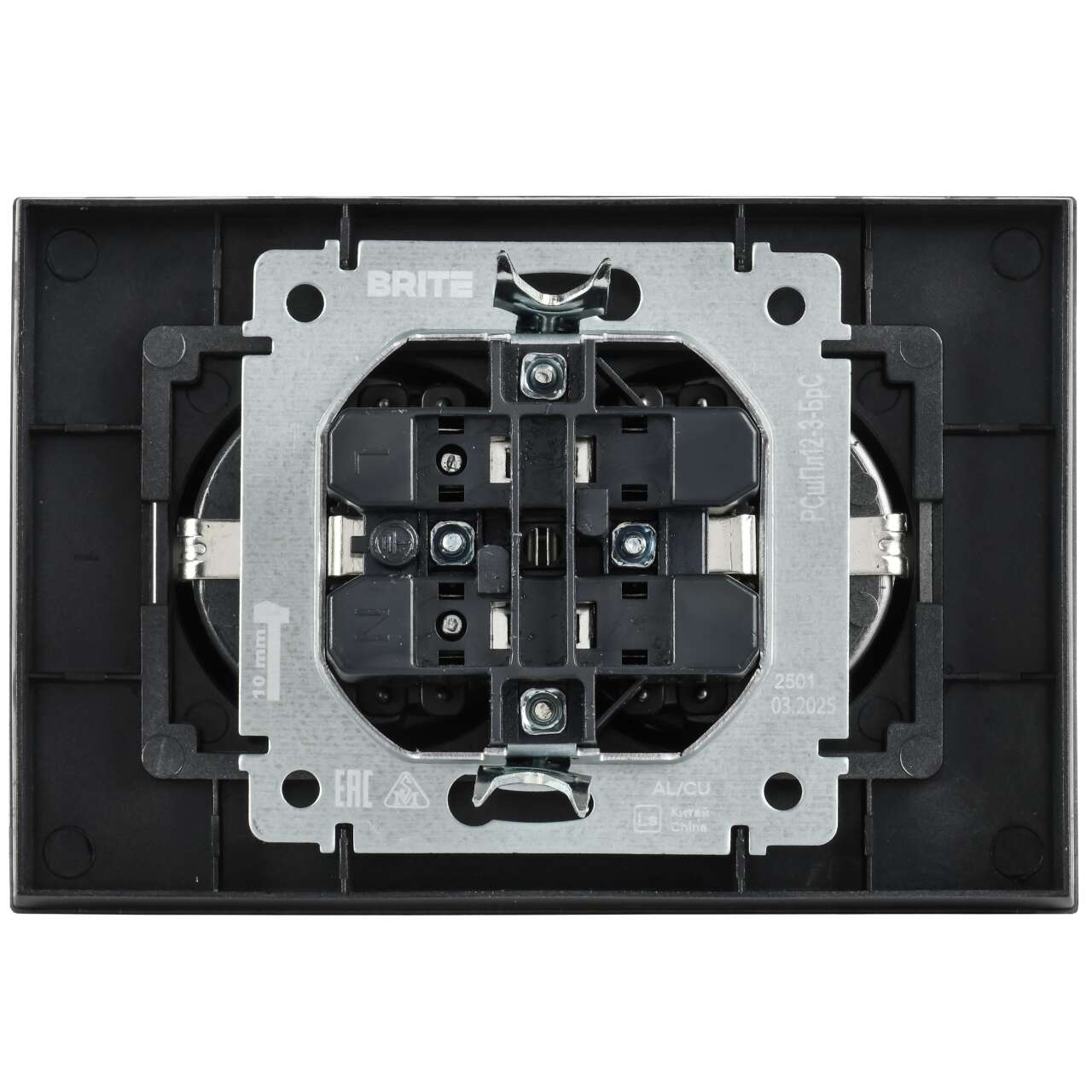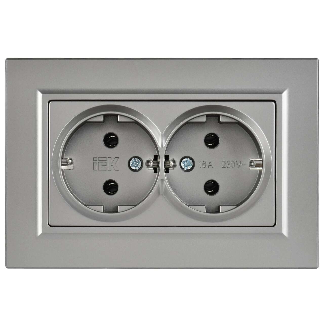 ОформитьBRITE Розетка 2-местная с заземлением без защитных шторок плоская 16А в сборе РСПл12-3-БрС сталь IEK