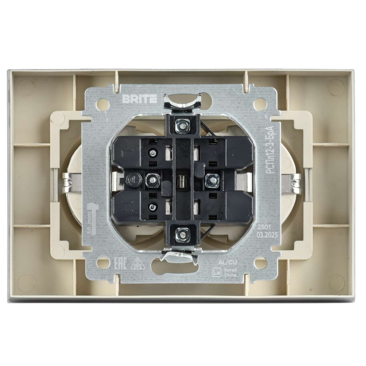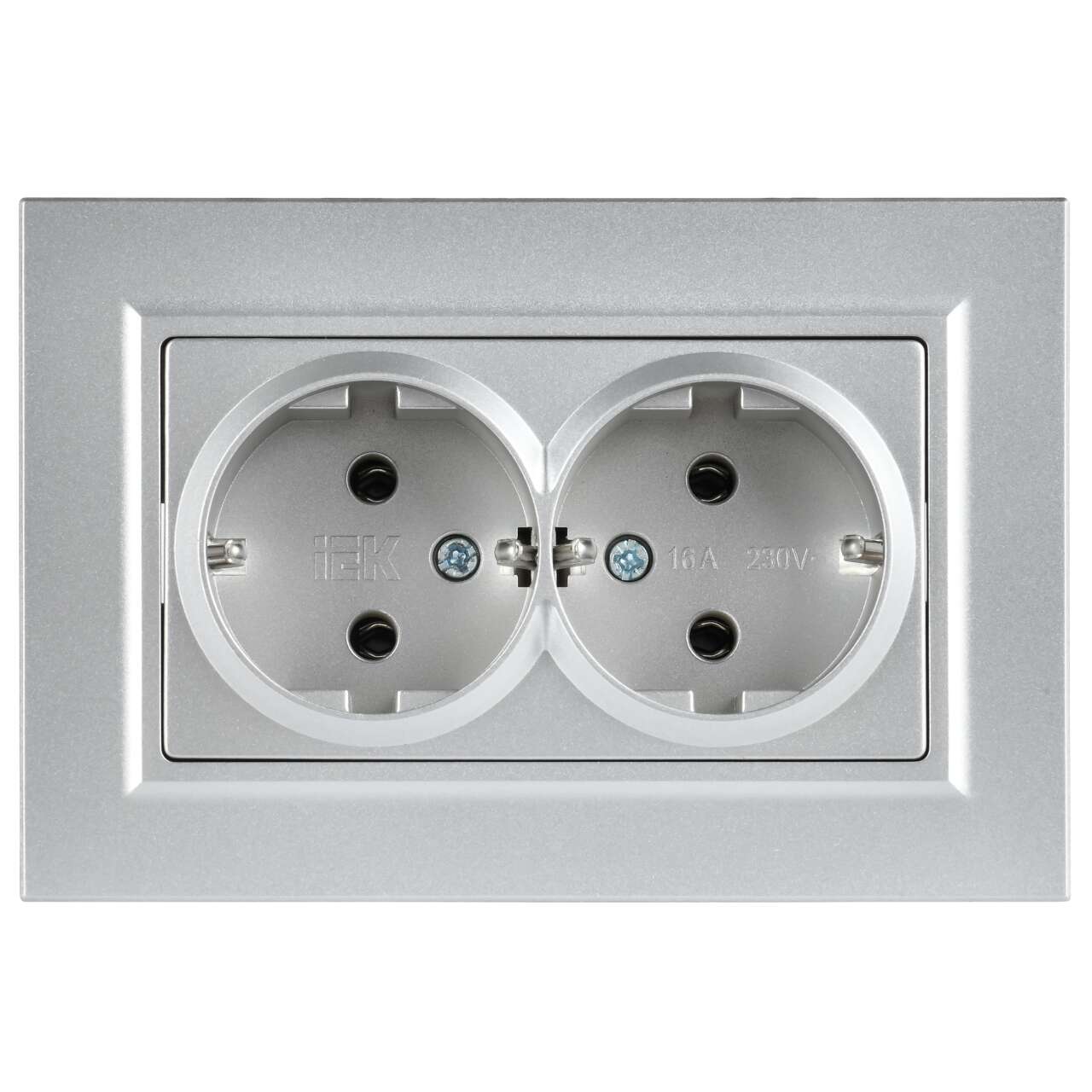 ОформитьBRITE Розетка 2-местная с заземлением без защитных шторок плоская 16А в сборе РСПл12-3-БрА алюминий IEK