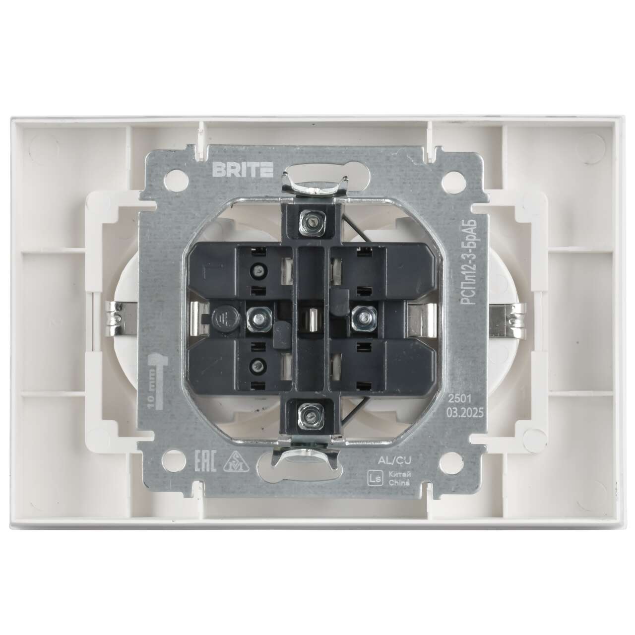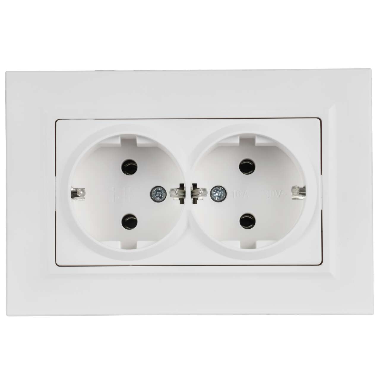 ОформитьBRITE Розетка 2-местная с заземлением без защитных шторок плоская 16А в сборе РСПл12-3-БрАБ арктический белый IEK