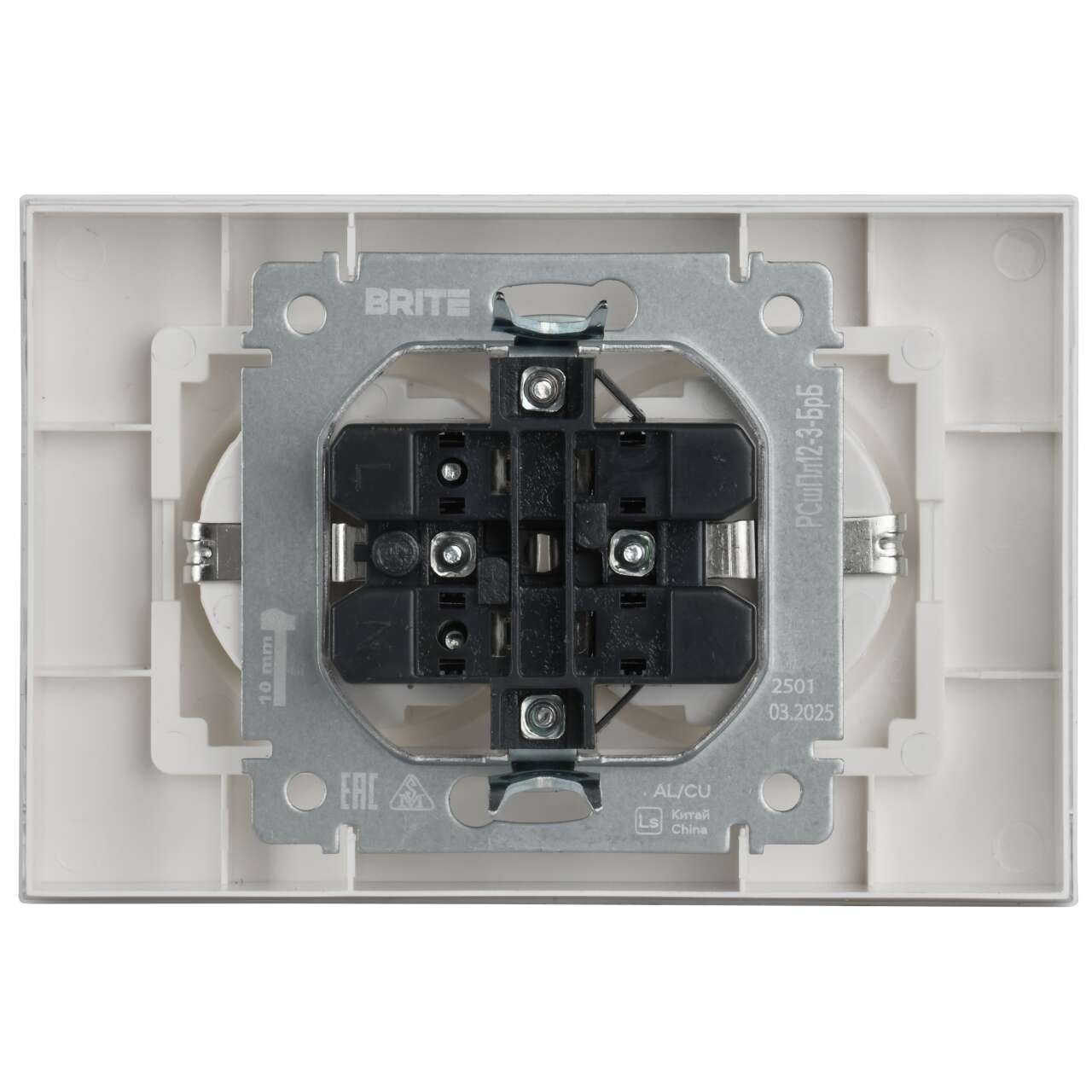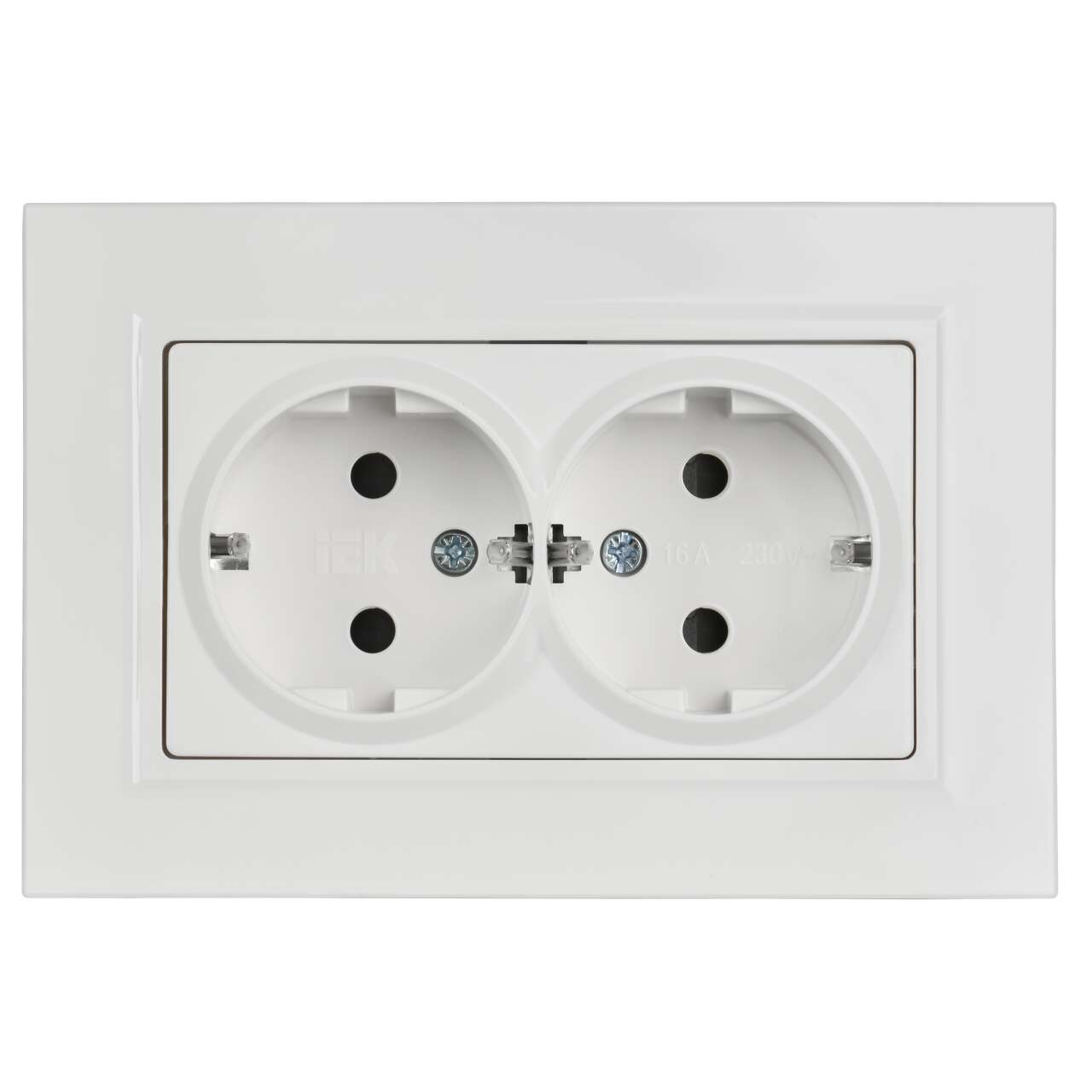 ОформитьBRITE Розетка 2-местная с заземлением с защитными шторками плоская 16А в сборе РСшПл12-3-БрБ белый IEK