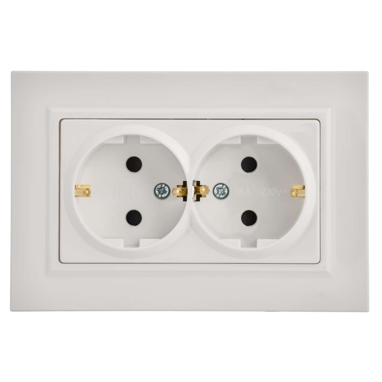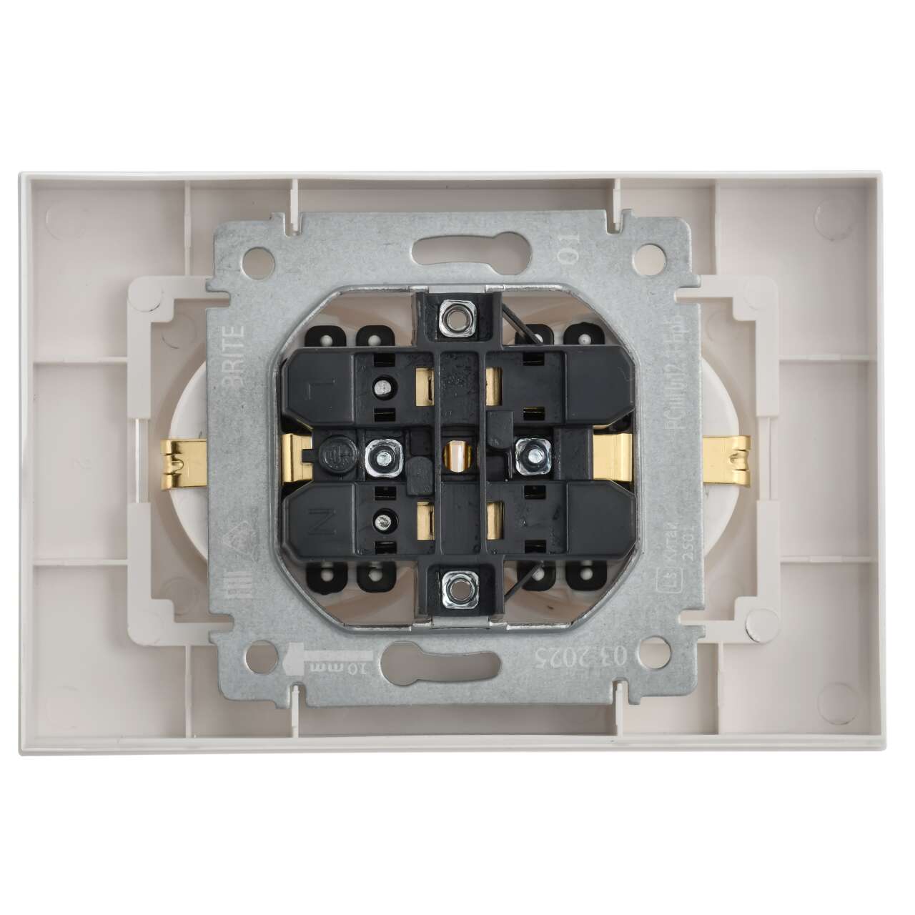 ОформитьBRITE Розетка 2-местная с заземлением с защитными шторками плоская 16А в сборе РСшПл12-3-БрБ белый