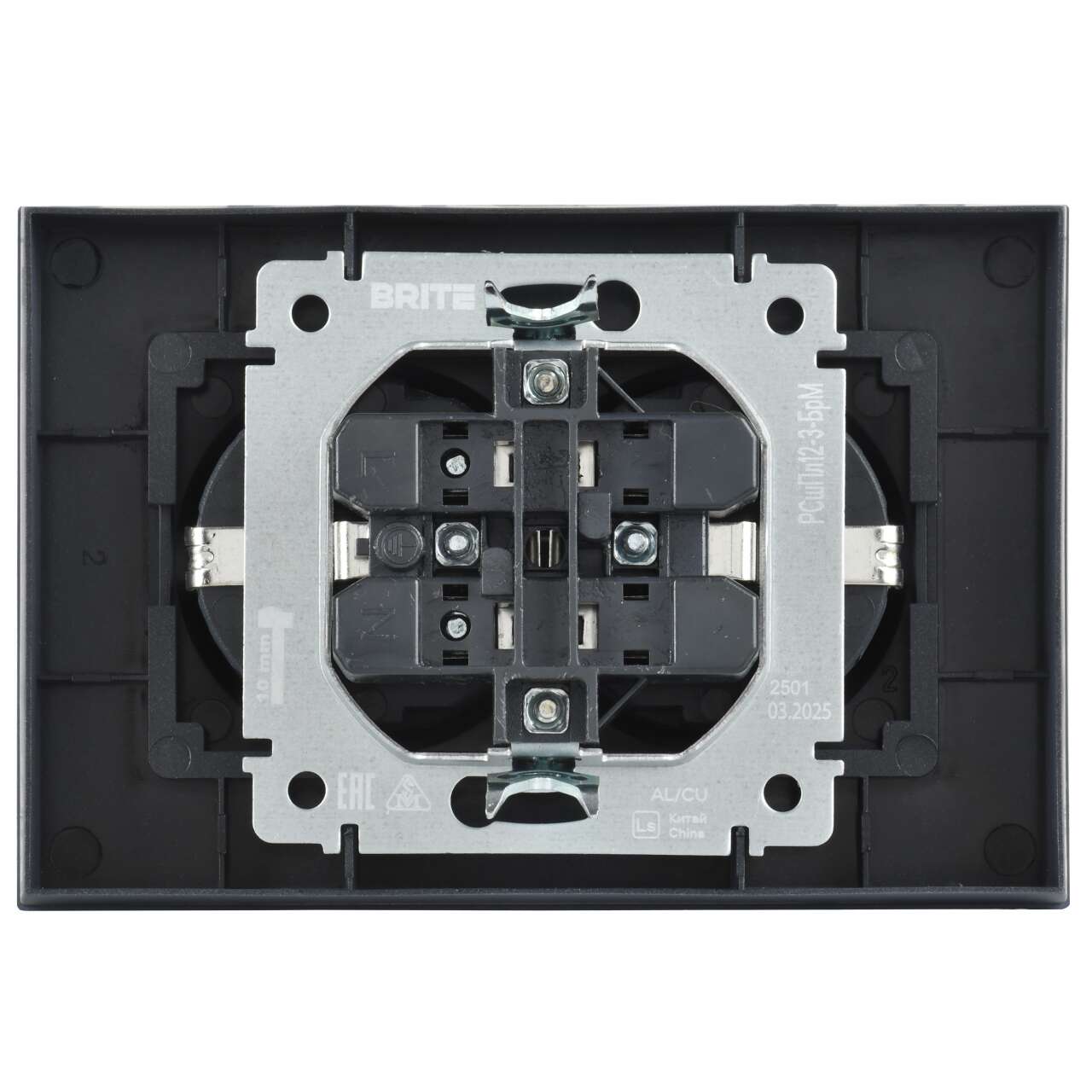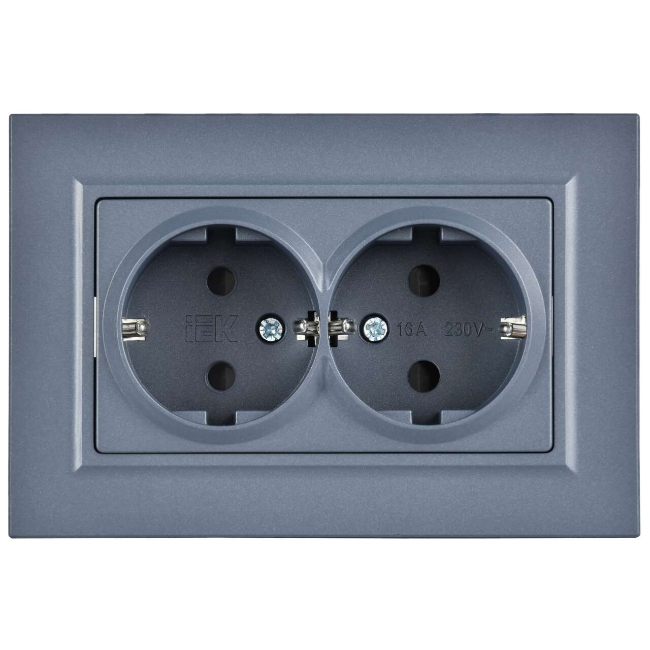ОформитьBRITE Розетка 2-местная с заземлением с защитными шторками плоская 16А в сборе РСшПл12-3-БрМ маренго IEK