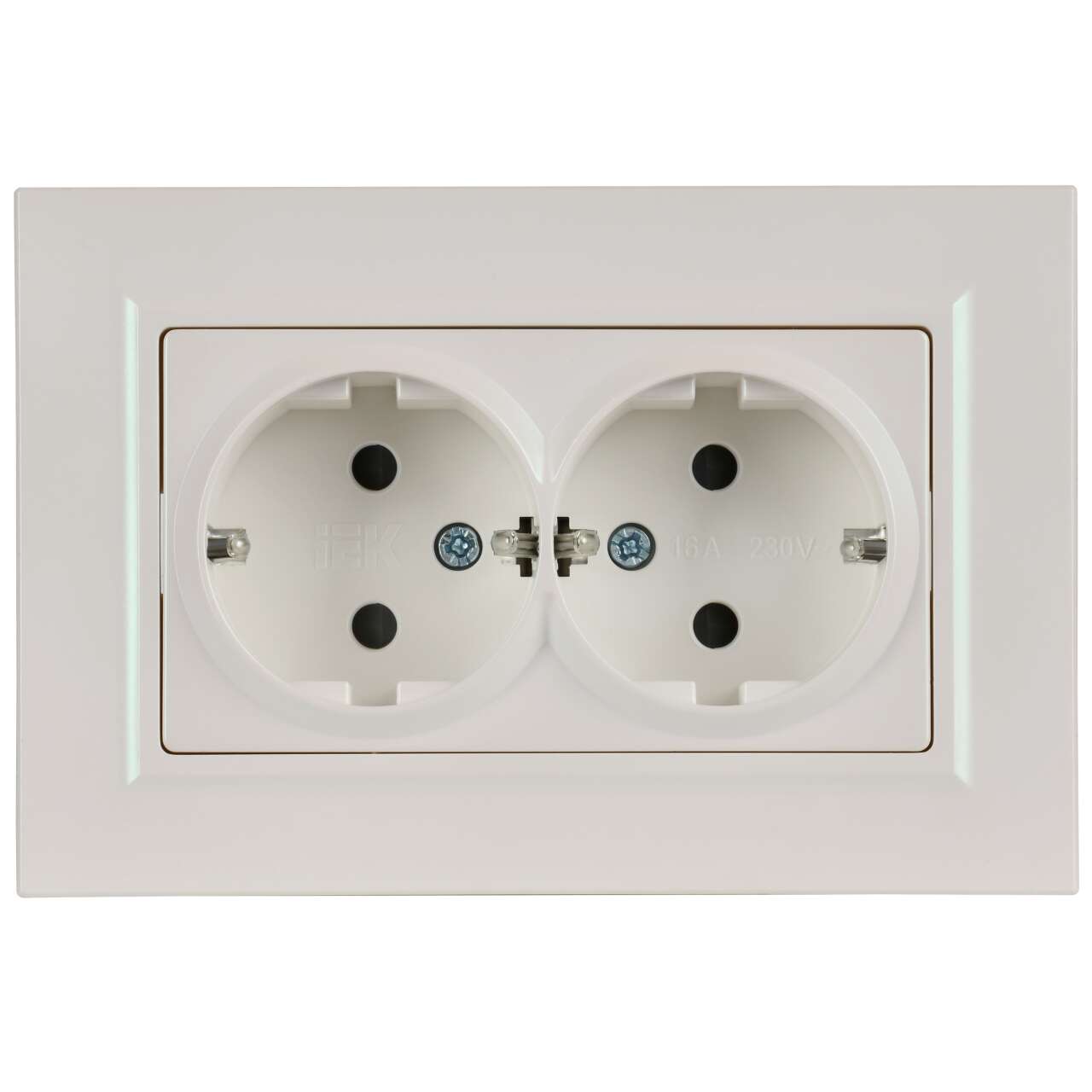 ОформитьBRITE Розетка 2-местная с заземлением с защитными шторками плоская 16А в сборе РСшПл12-3-БрЖ жемчуг IEK