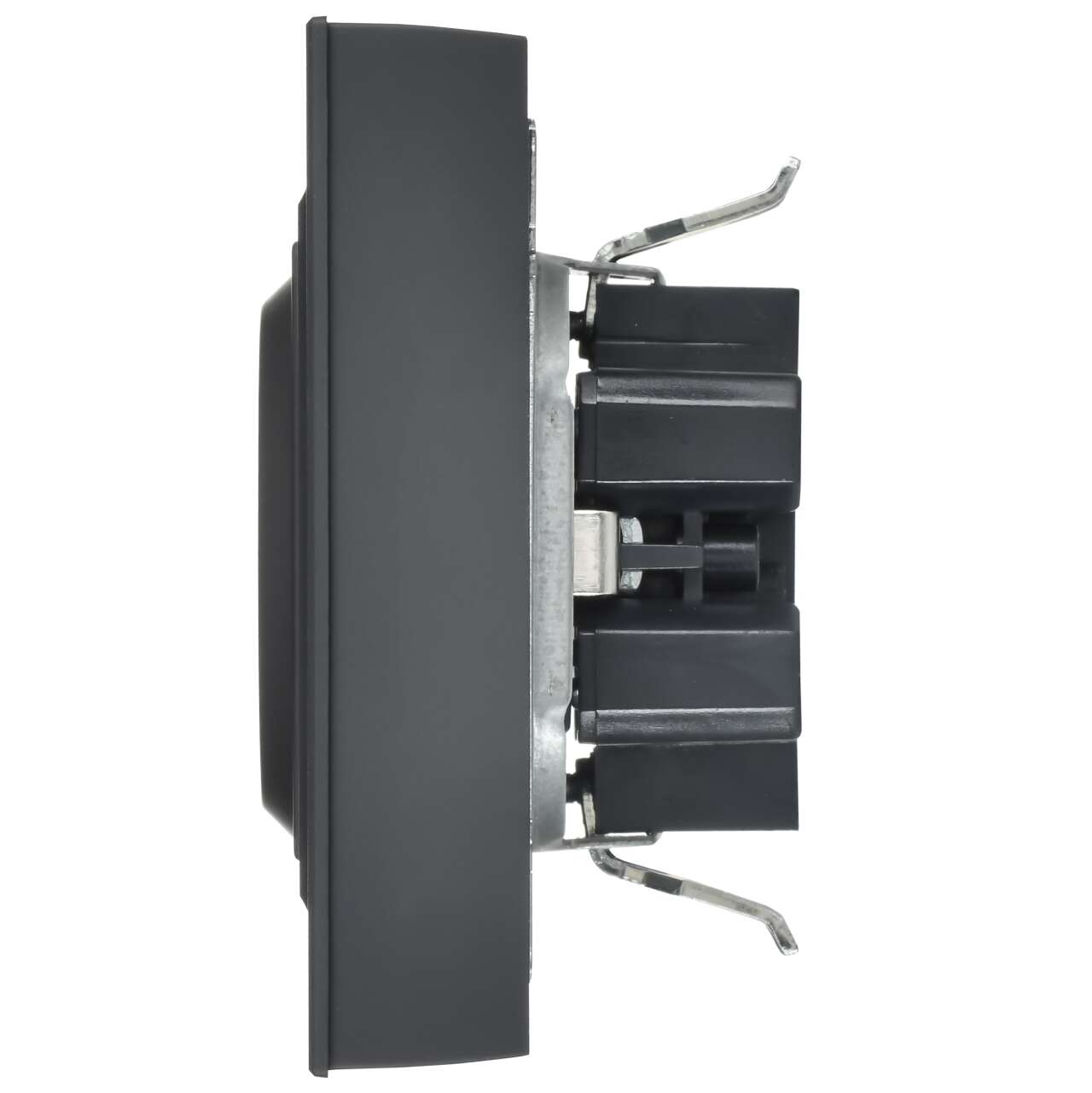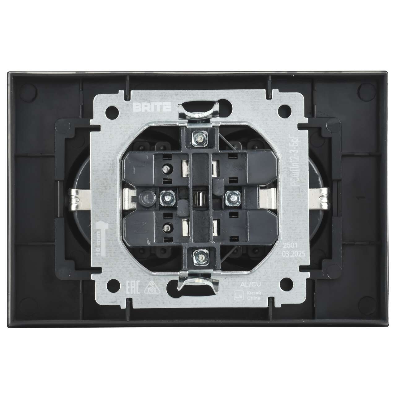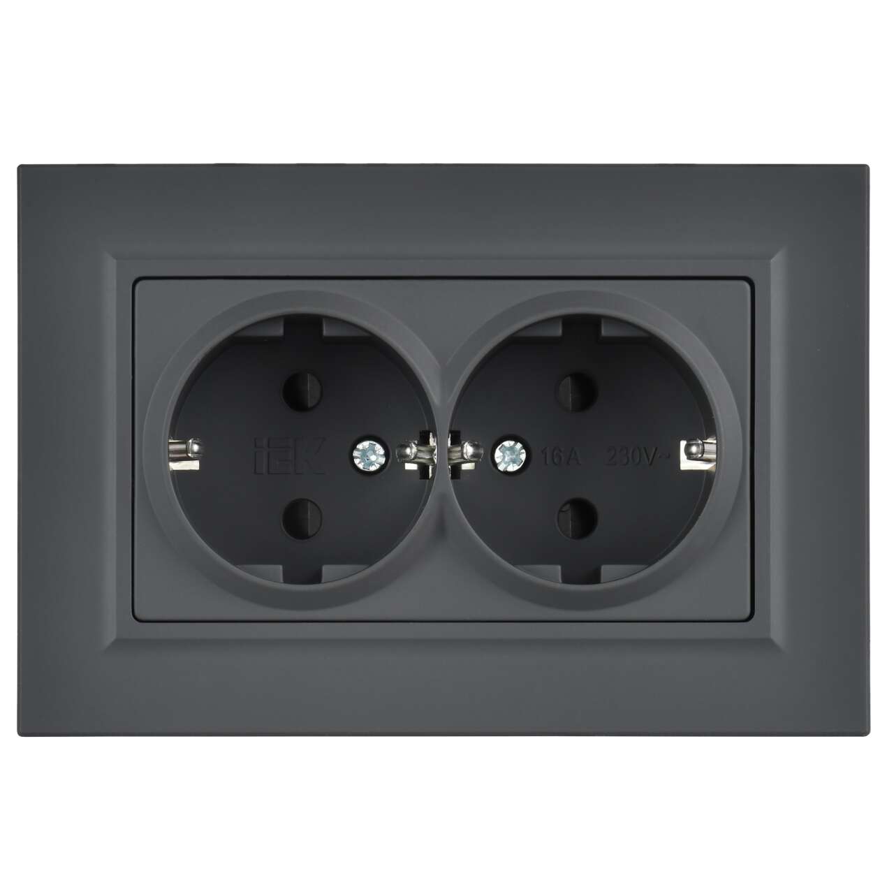 ОформитьBRITE Розетка 2-местная с заземлением с защитными шторками плоская 16А в сборе РСшПл12-3-БрГ графит IEK
