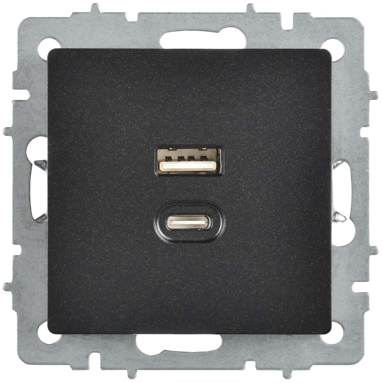 ОформитьBRITE Розетка USB A+C 45Вт высокоскоростная зарядка РЮ11-2-БрЧ черный IEK