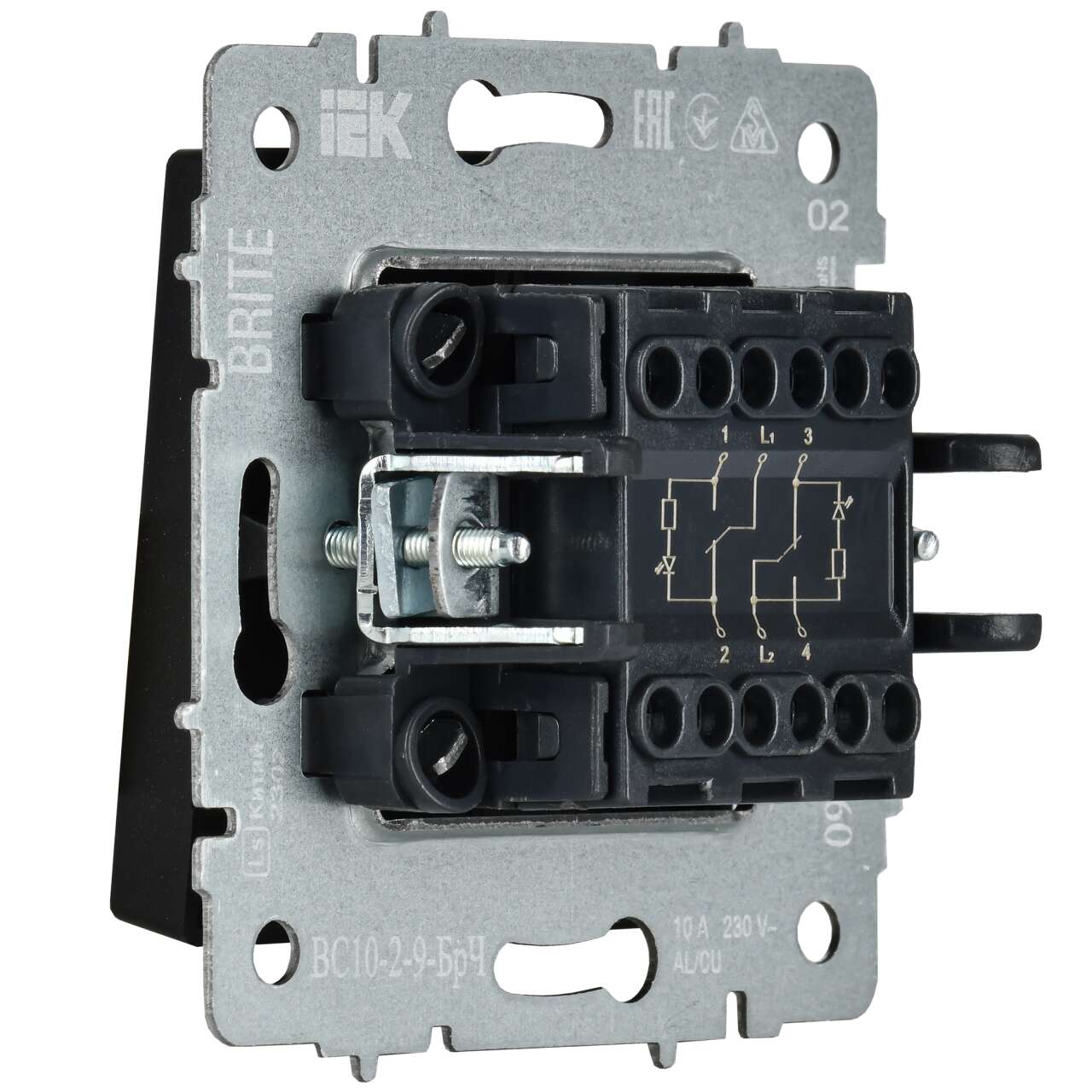 ОформитьBRITE Выключатель 2-клавишный с индикацией для отелей 10А ВС10-2-9-БрЧ черный IEK