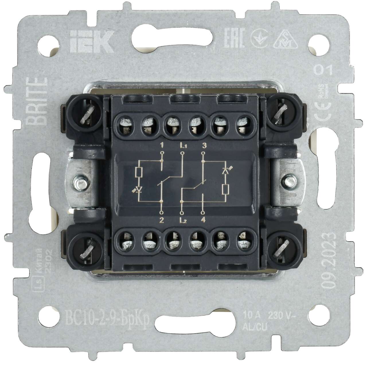 ОформитьBRITE Выключатель 2-клавишный с индикацией для отелей 10А ВС10-2-9-БрКр бежевый IEK