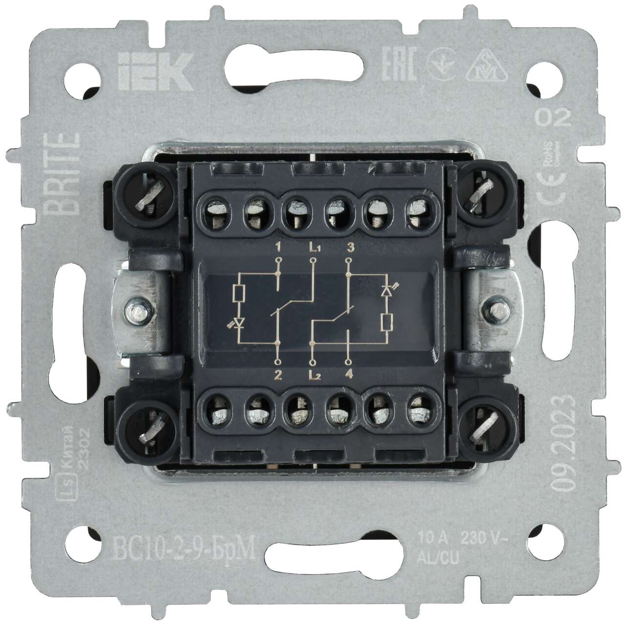ОформитьBRITE Выключатель 2-клавишный с индикацией для отелей 10А ВС10-2-9-БрМ маренго IEK