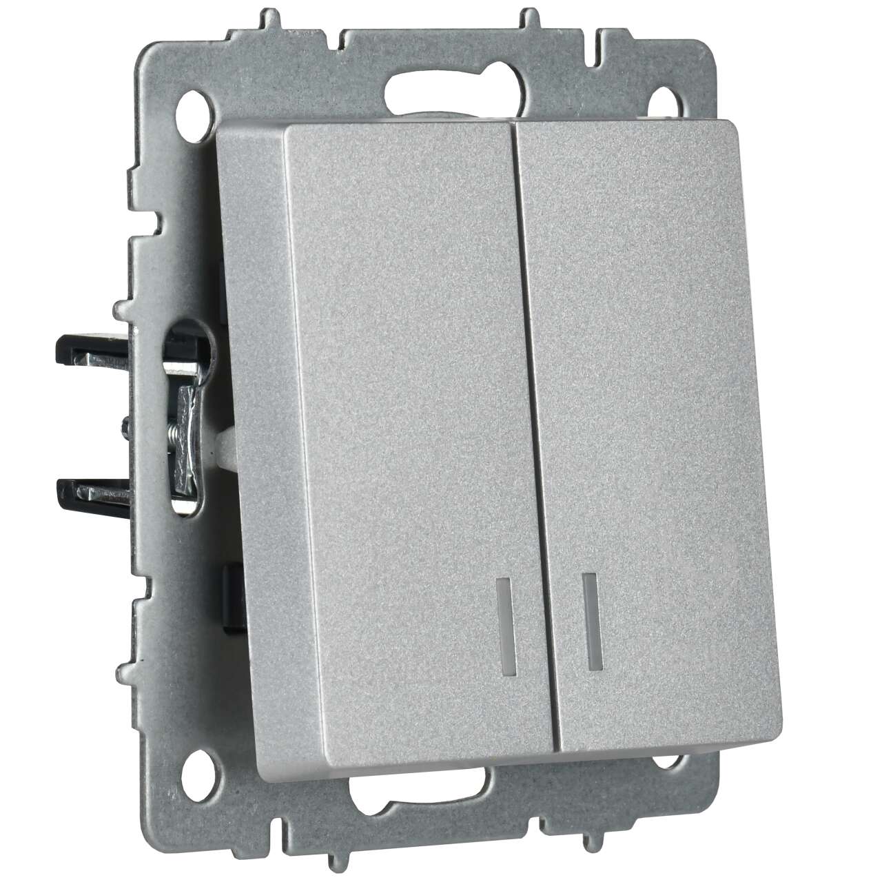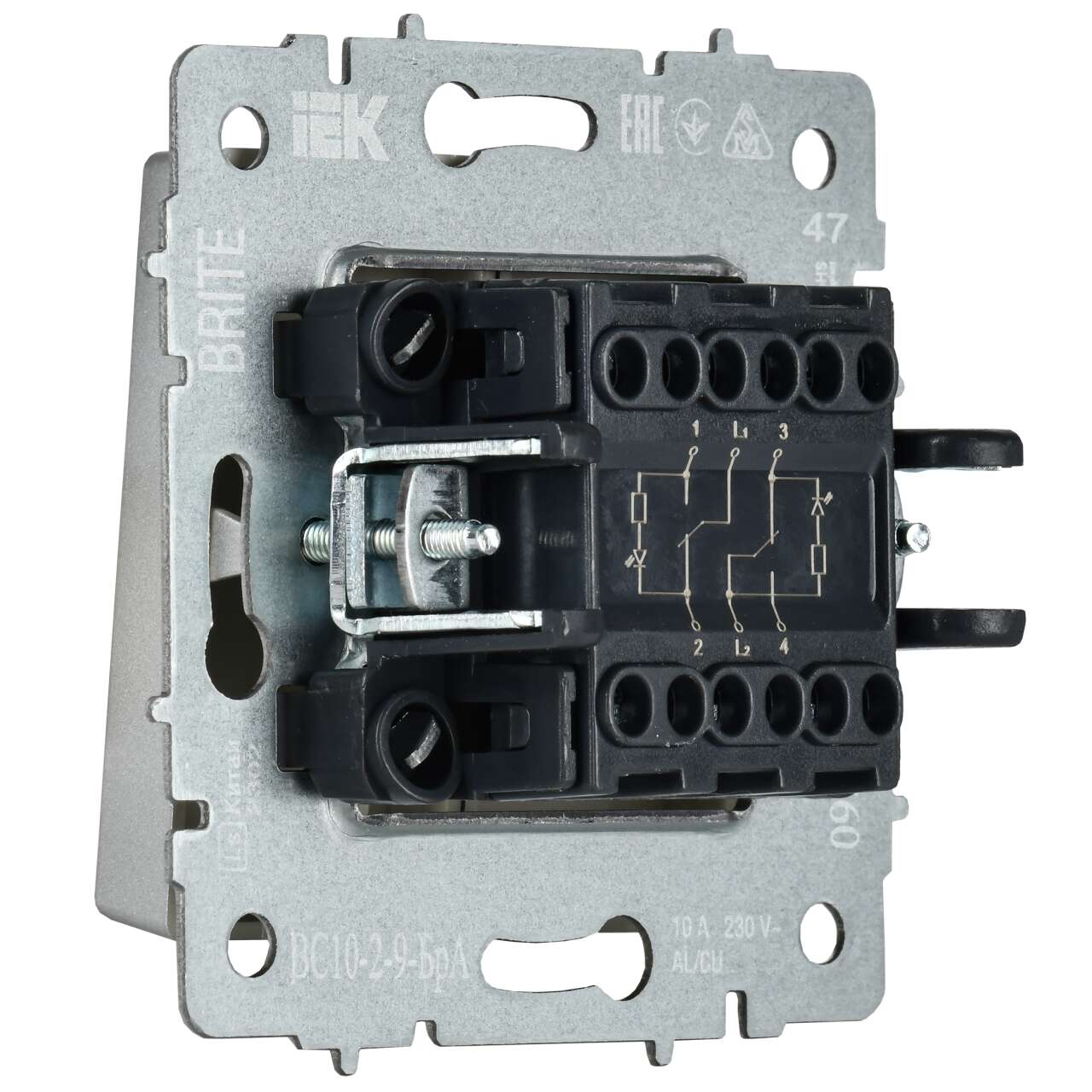 ОформитьBRITE Выключатель 2-клавишный с индикацией для отелей 10А ВС10-2-9-БрА алюминий IEK