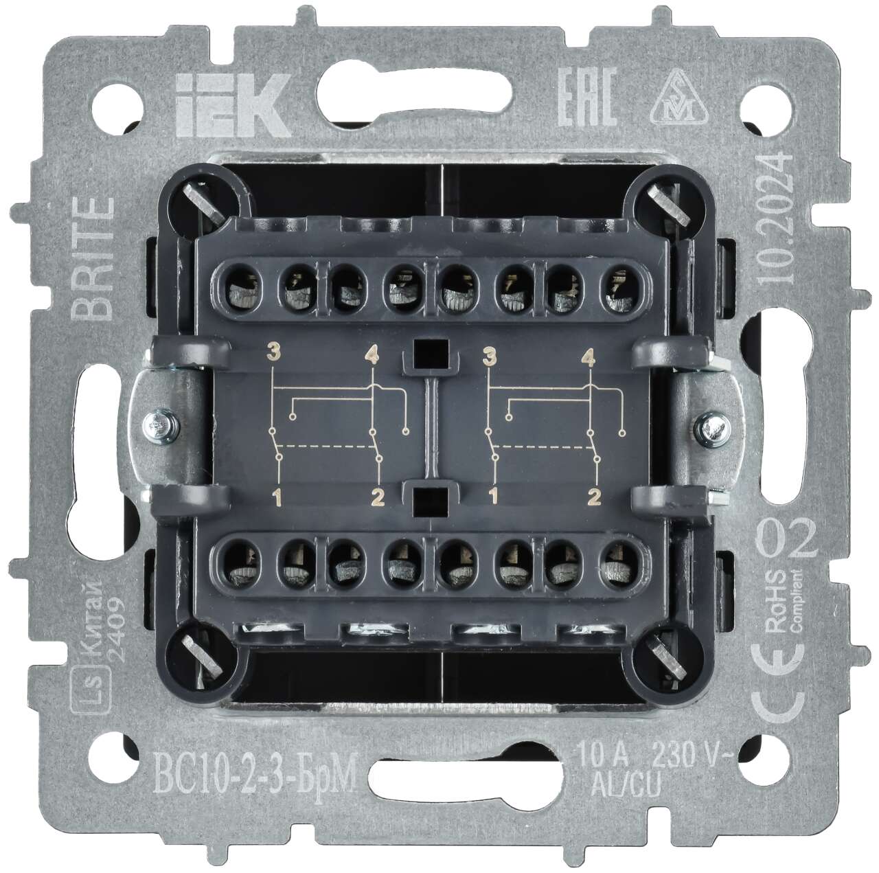 ОформитьBRITE Выключатель 2-клавишный перекрестный 10А ВС10-2-3-БрМ маренго IEK