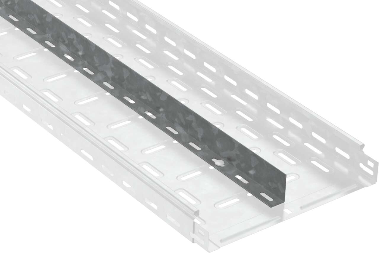 Совместно с лотком может использоваться перегородка, которая служит для разделения лотка на два и более отдела в случае монтажа в одном лотке проводки разного типа (информационной и силовой) для исключения наводок. Разделительная перегородка совместима со всеми типами лотков IEK.