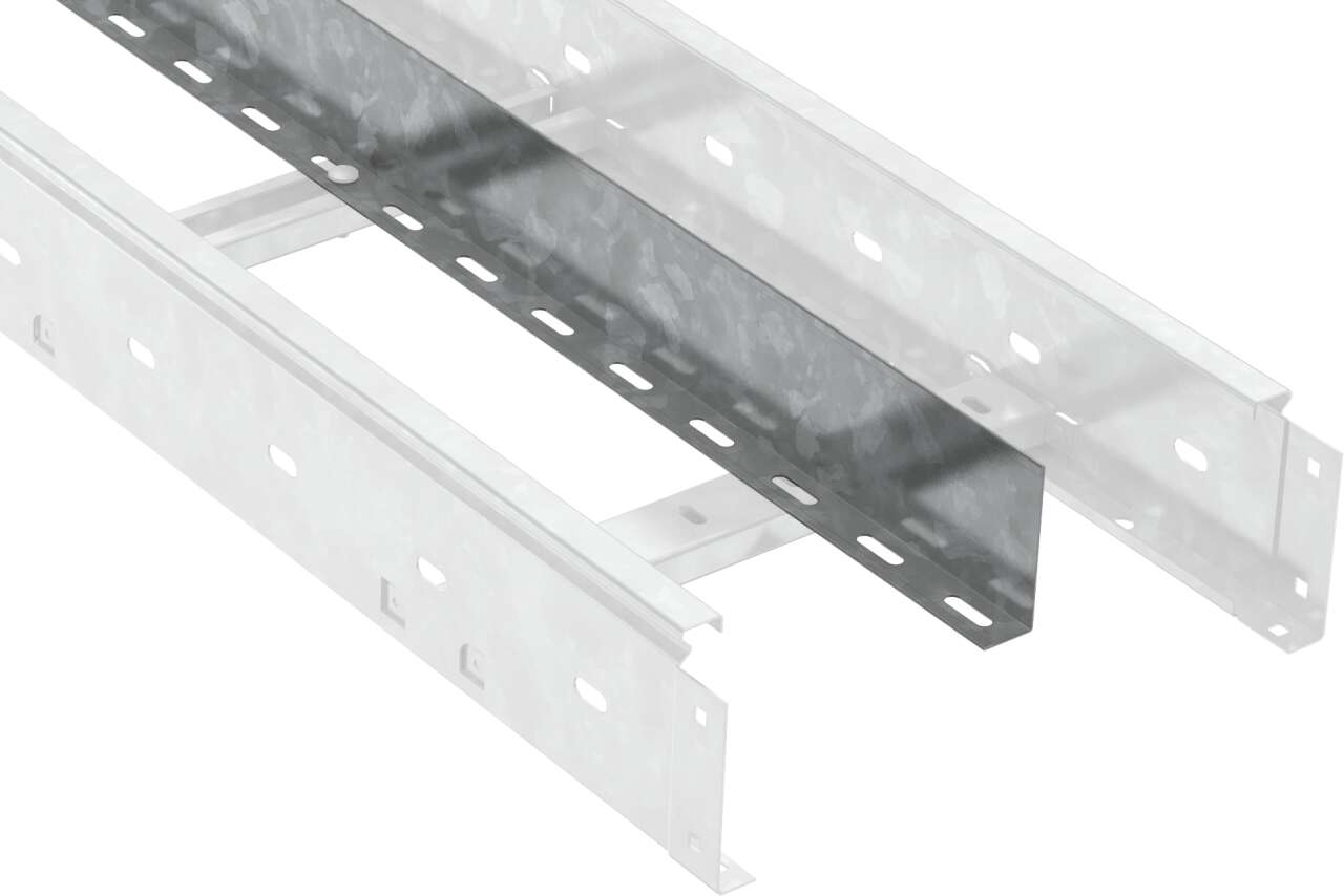 Совместно с лотком может использоваться перегородка, которая служит для разделения лотка на два и более отдела в случае монтажа в одном лотке проводки разного типа (информационной и силовой) для исключения наводок. Разделительная перегородка совместима со всеми типами лотков IEK.