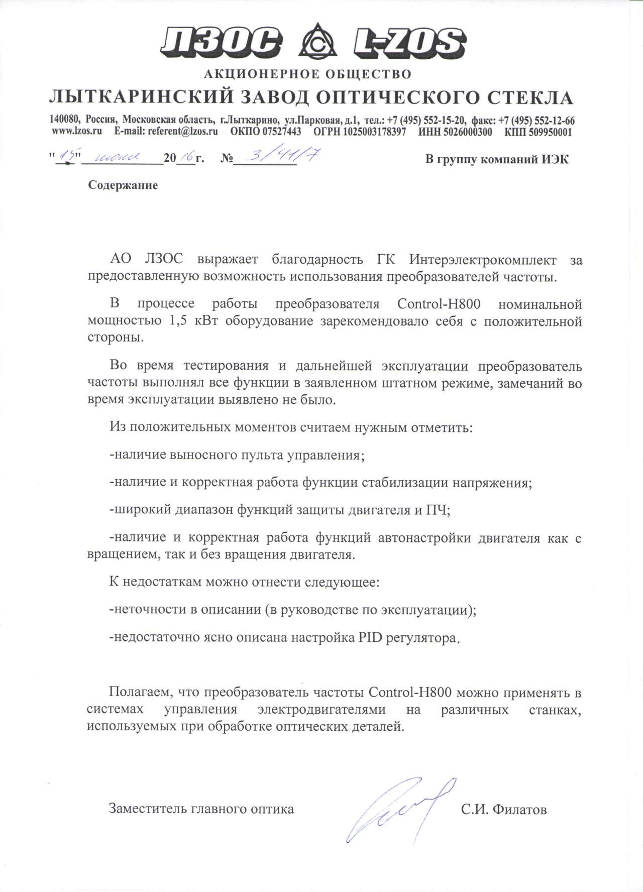 Отзывы по поставкам продукции от наших партнеров