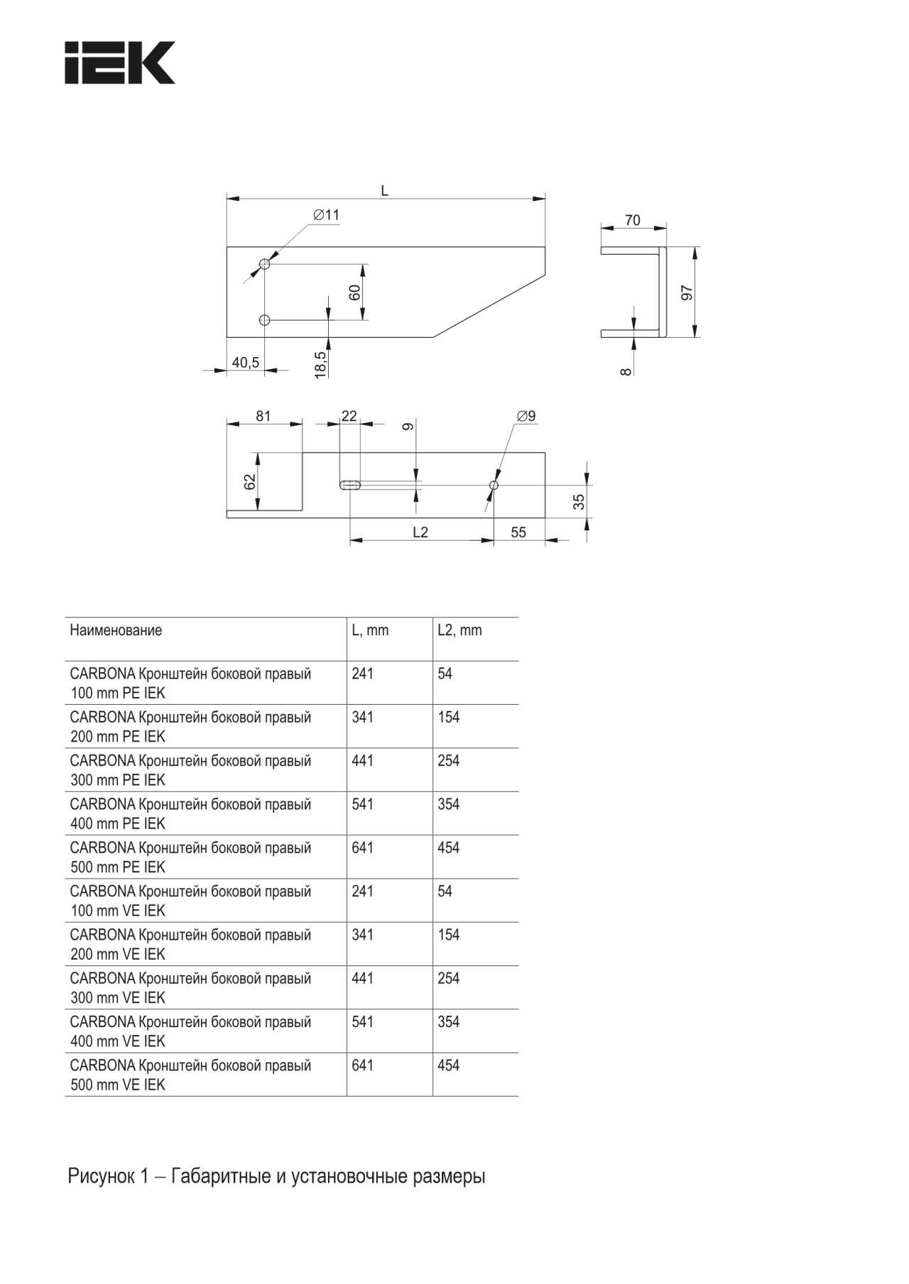 ОформитьCARBONA Кронштейн боковой правый 200мм PE IEK