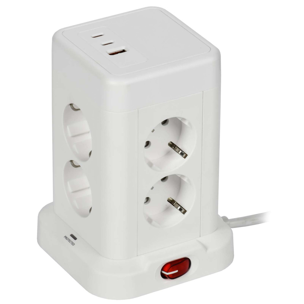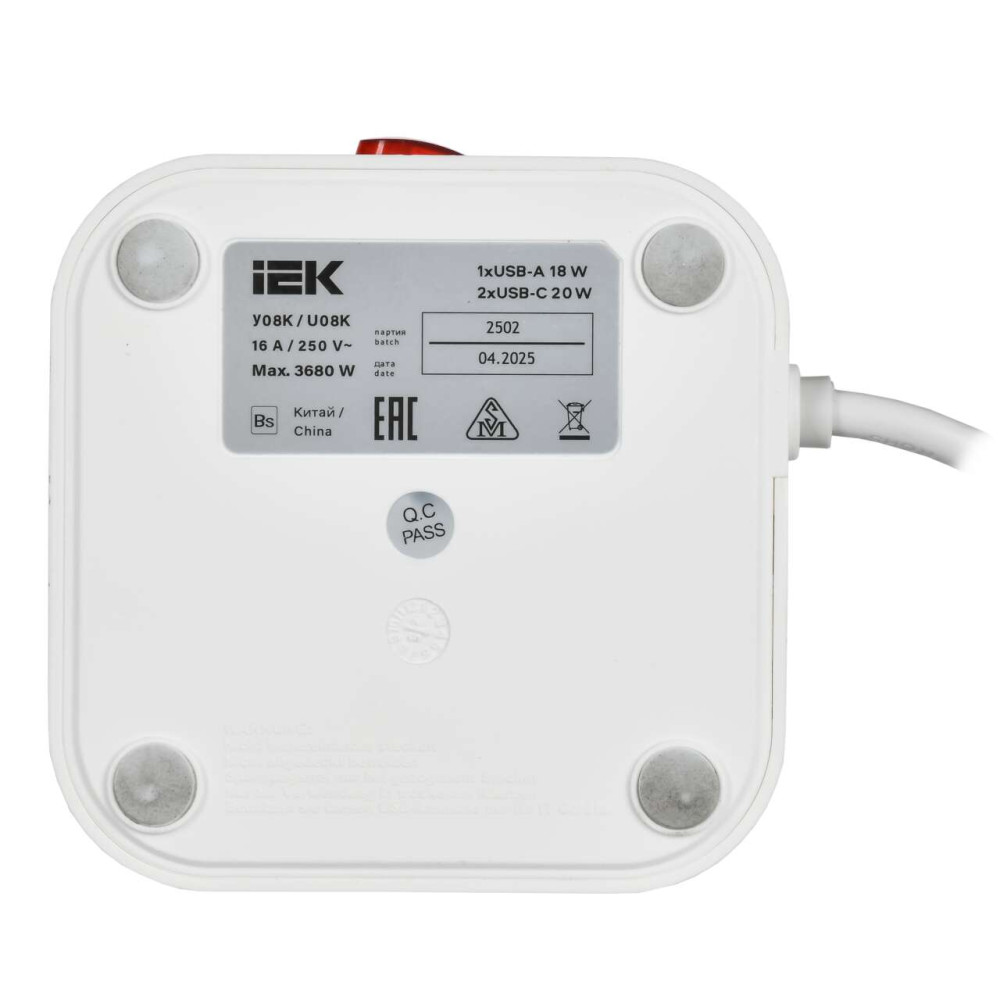 ОформитьDOMINIC Удлинитель У08K 8 мест 2P+PE 1,5м 3х1,0мм2 16А/250В USB A+C 20Вт белый IEK