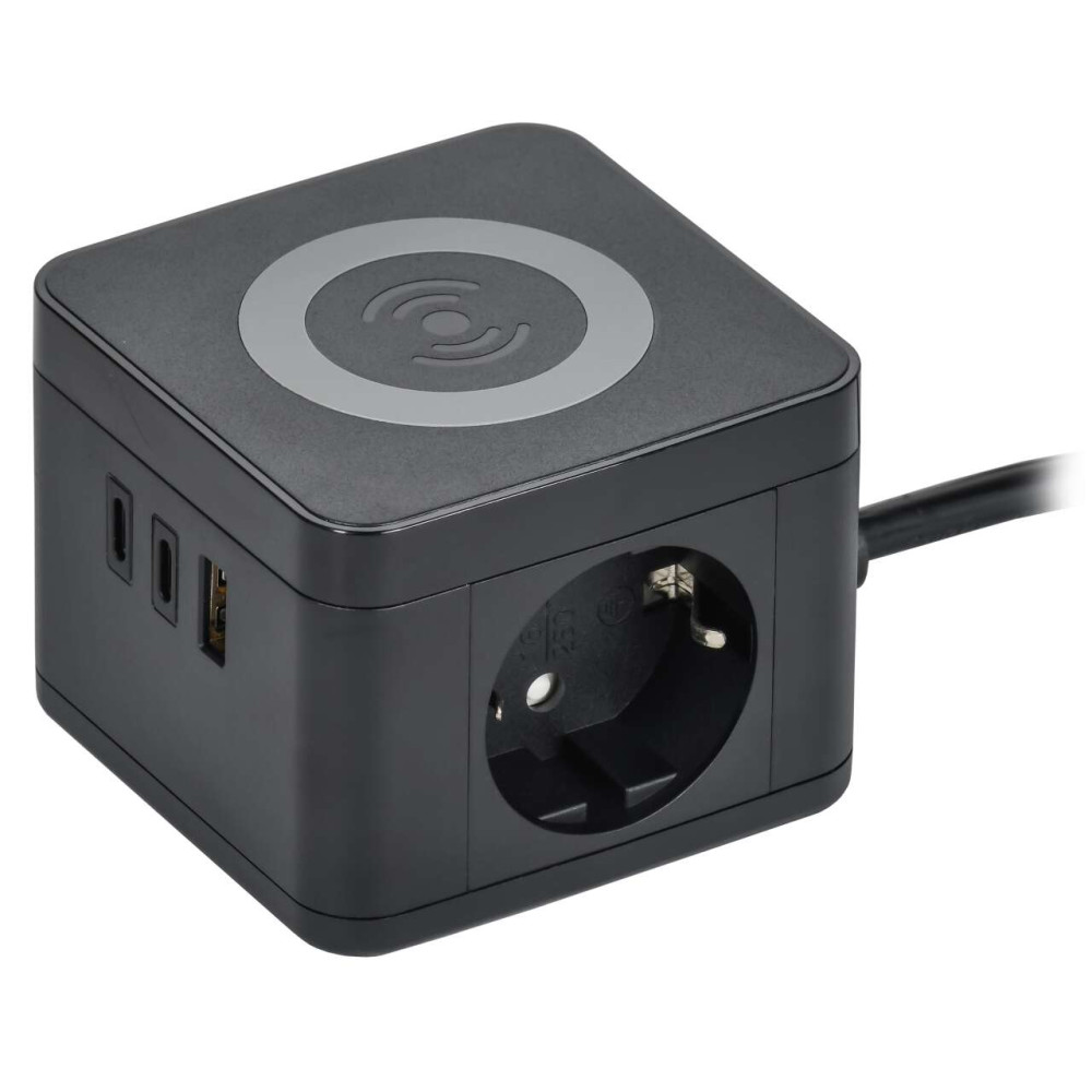 ОформитьDOMINIC Удлинитель с беспроводной зарядкой 10Вт У02К 2 места 2P+PE 1,3м 3х1,0мм2 16А/250В USB A+C черный IEK