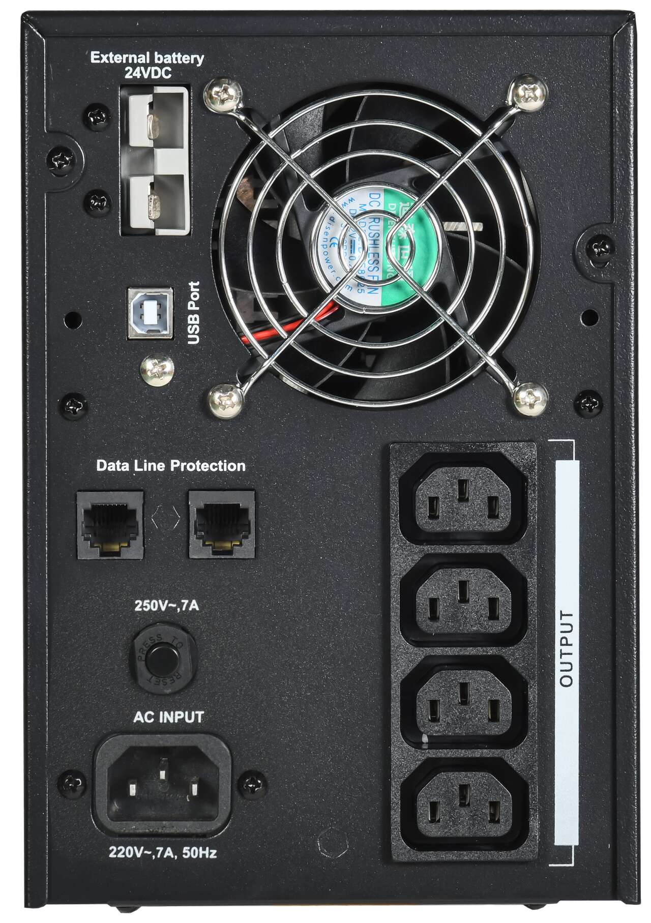ИБП оснащен 8 разъемами C13, USB разъемом и расширенным зарядным устройством.