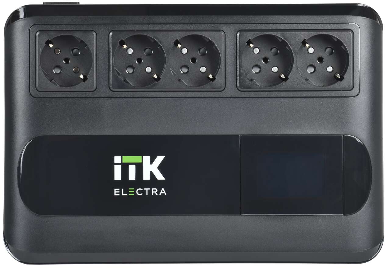 ITK ELECTRA LT5 - Линейно-интерактивный ИБП для обеспечения непрерывного питания электронного оборудования в офисах и бытовом применении. Он обеспечивает защиту от скачков напряжения, перебоев в электросети и потерь электропитания, а также обеспечивает комфорт и уверенность при работе с персональным компьютером, офисной техникой и сопутствующей периферией. ИБП прост в эксплуатации и оснащен 5 розетками SCHUKO и LCD дисплеем с USB разъемом. В ИБП встроена 1 свинцово-кислотная батарея на 7Ач.