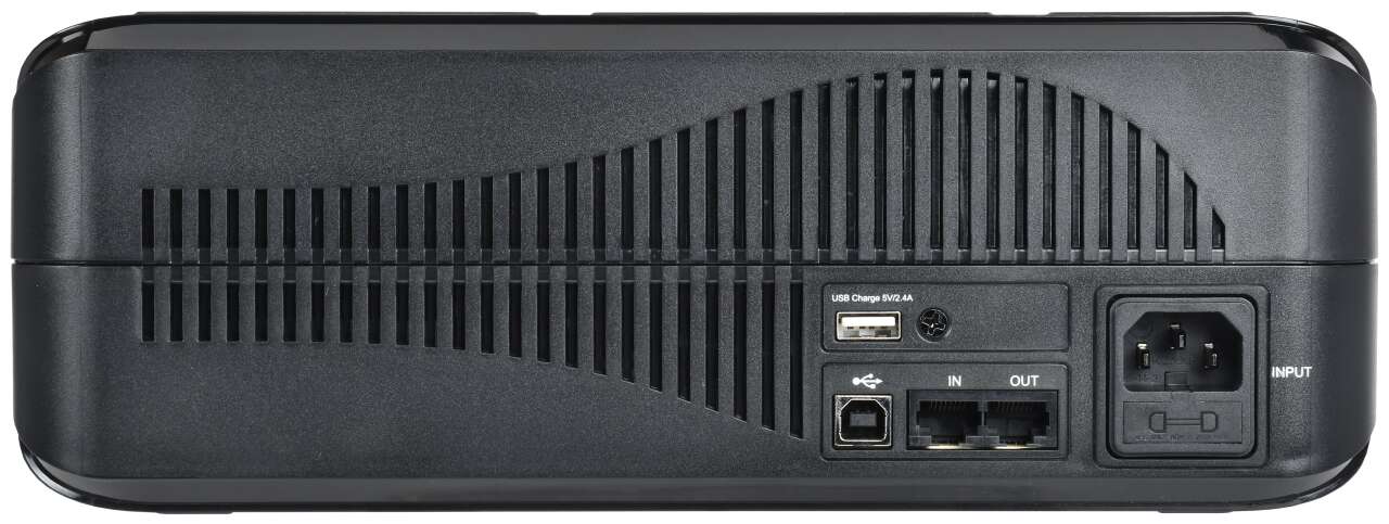 - Оснащен 2 разъемами RJ-11 для защиты телефона, модема или факса от скачков напряжения.