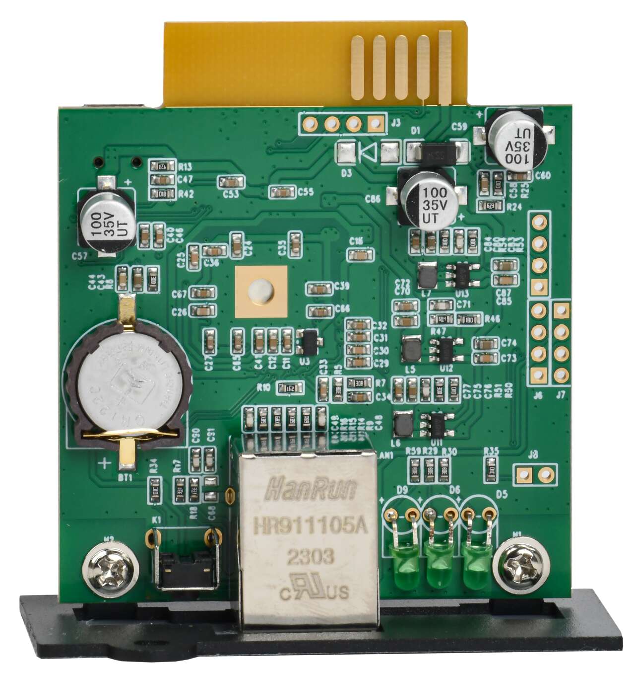 Встраиваемая сетевая карта SNMP для ИБП серии ITK ELECTRA OR позволяет собирать информацию о работе и управлять источником бесперебойного питания по протоколу SNMP. С её помощью можно просматривать текущее состояние ИБП, настраивать его параметры и задавать программу автоматического отключения в различных ситуациях, таких как отсутствие питания в сети, разряд батареи, перегрузка или перегрев ИБП, а также для планового отключения.