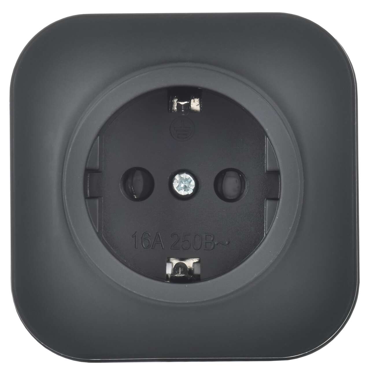 ОформитьGLORY Розетка 1-местная для открытой установки с заземлением без защитных шторок 16А РС20-3-ХЧм черный матовый IEK