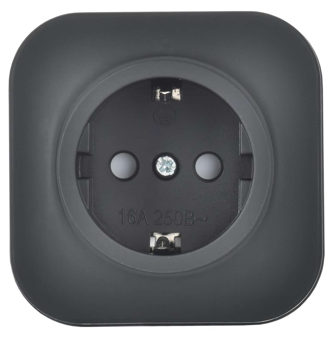 ОформитьGLORY Розетка 1-местная для открытой установки с заземлением с защитными шторками 16А РСш20-3-ХЧм черный матовый IEK