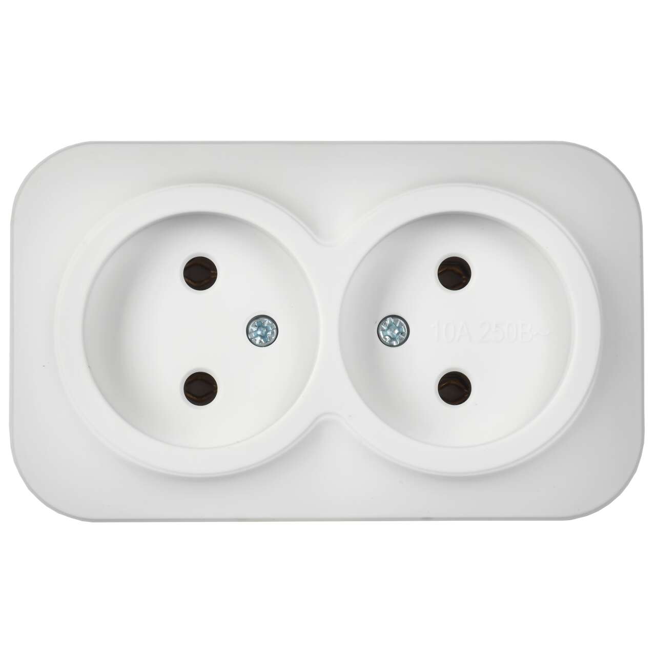 ОформитьGLORY Розетка 2-местная для открытой установки без заземления без защитных шторок 10А РС22-2-ХБм белый матовый IEK