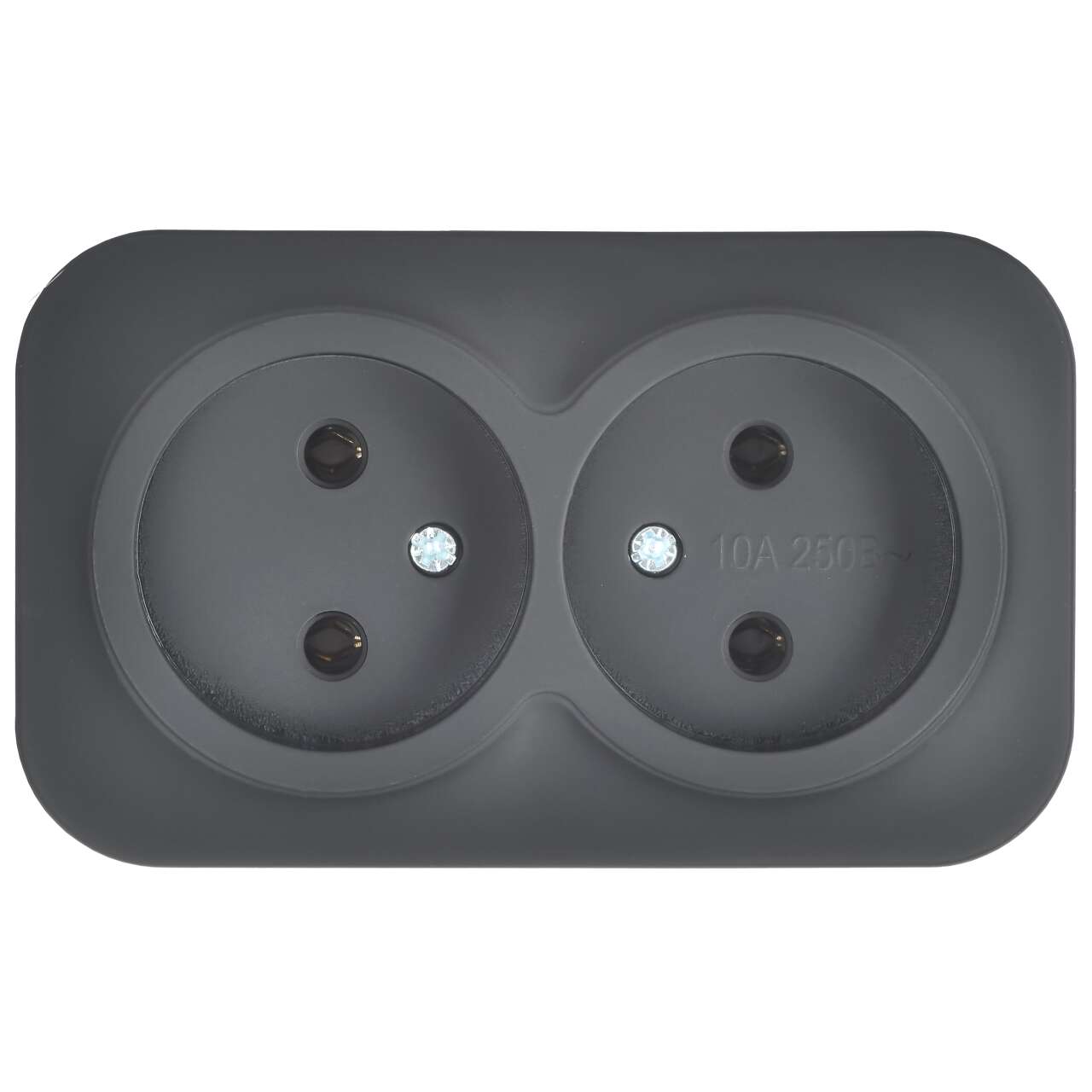 ОформитьGLORY Розетка 2-местная для открытой установки без заземления без защитных шторок 10А РС22-2-ХЧм черный матовый IEK