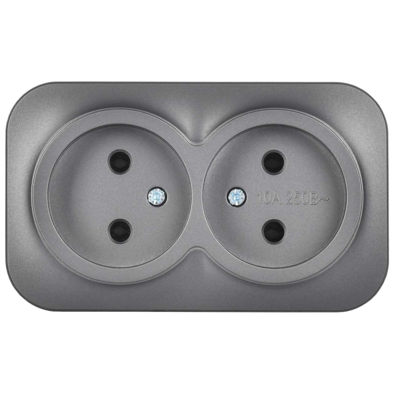 ОформитьGLORY Розетка 2-местная для открытой установки без заземления без защитных шторок 10А РС22-2-ХСм сталь матовый IEK