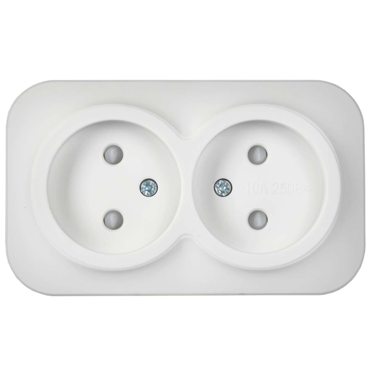 ОформитьGLORY Розетка 2-местная для открытой установки без заземления с защитными шторками 10А РСш22-2-ХБм белый матовый IEK