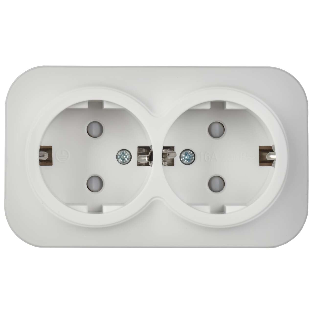 ОформитьGLORY Розетка 2-местная для открытой установки с заземлением с защитными шторками 16А РСш22-3-ХБм белый матовый IEK