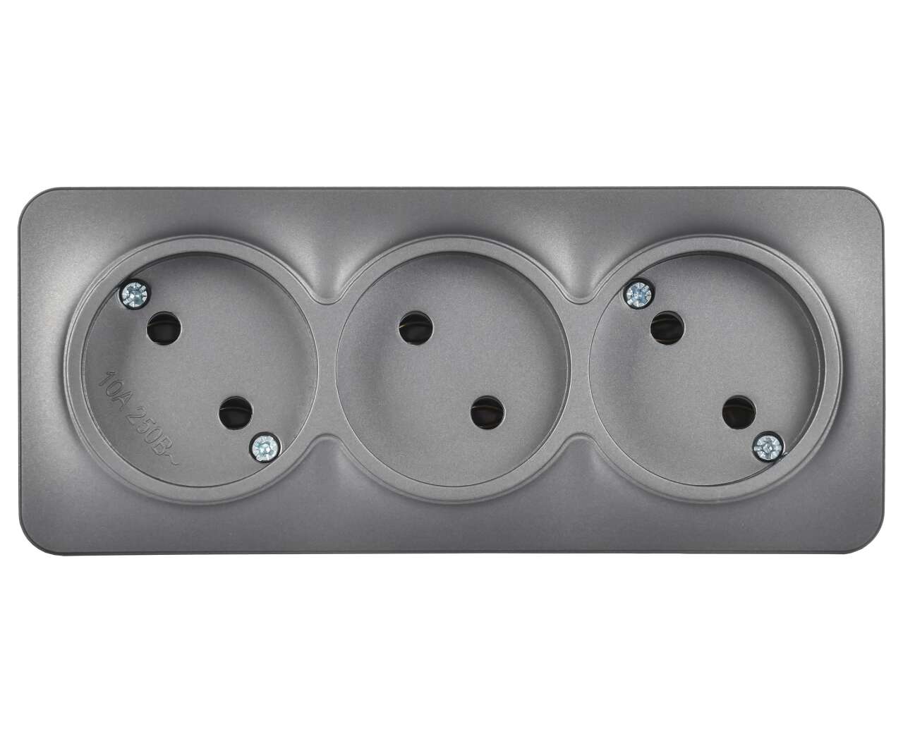 ОформитьGLORY Розетка 3-местная для открытой установки без заземления без защитных шторок 10А РС23-2-ХСм сталь матовый IEK