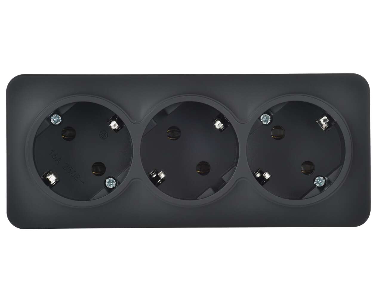 ОформитьGLORY Розетка 3-местная для открытой установки с заземлением без защитных шторок 16А РС23-3-ХЧм черный матовый IEK