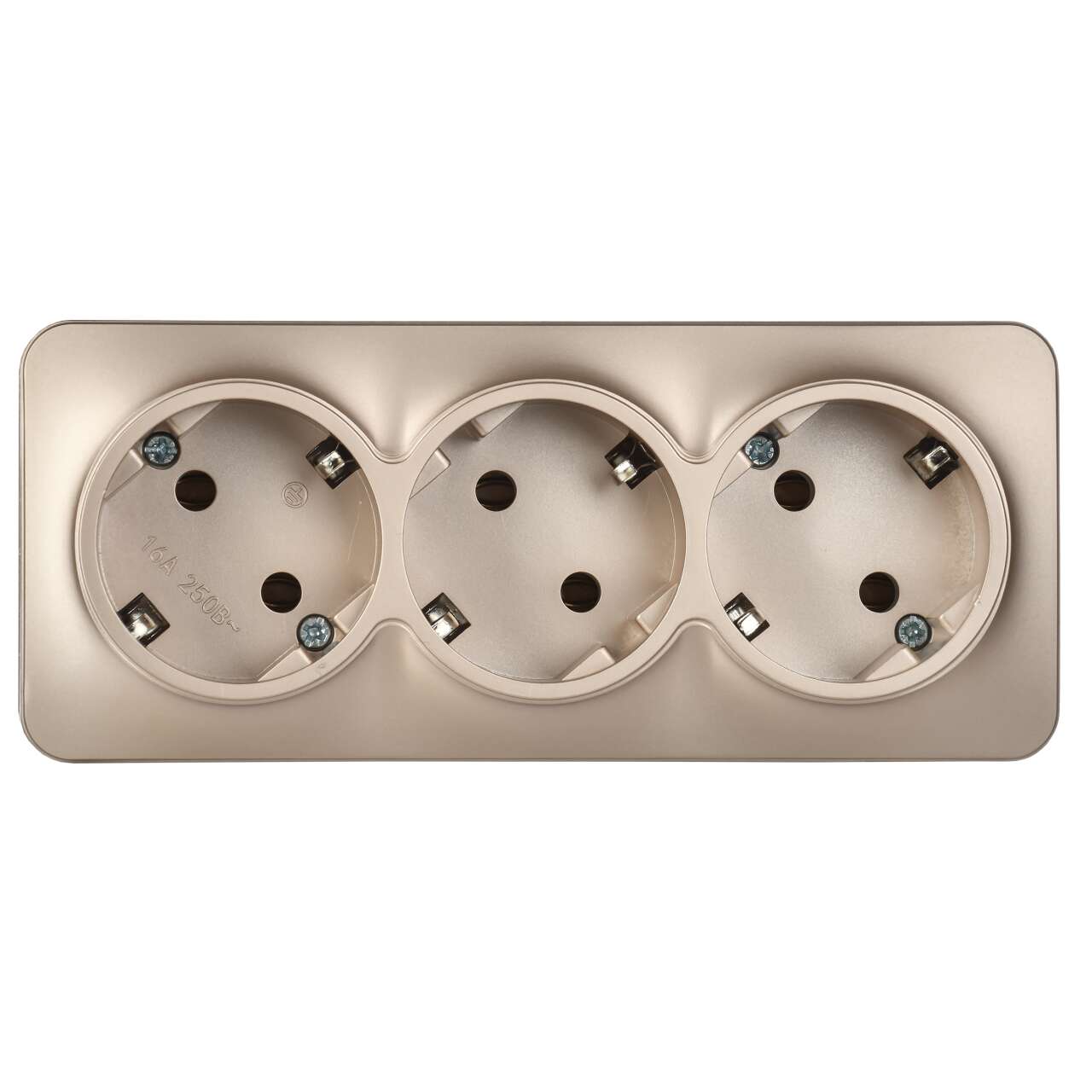 ОформитьGLORY Розетка 3-местная для открытой установки с заземлением без защитных шторок 16А РС23-3-ХШм шампань матовый IEK