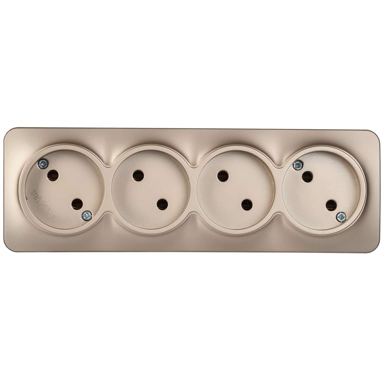ОформитьGLORY Розетка 4-местная для открытой установки без заземления без защитных шторок 10А РС24-2-ХШм шампань матовый IEK