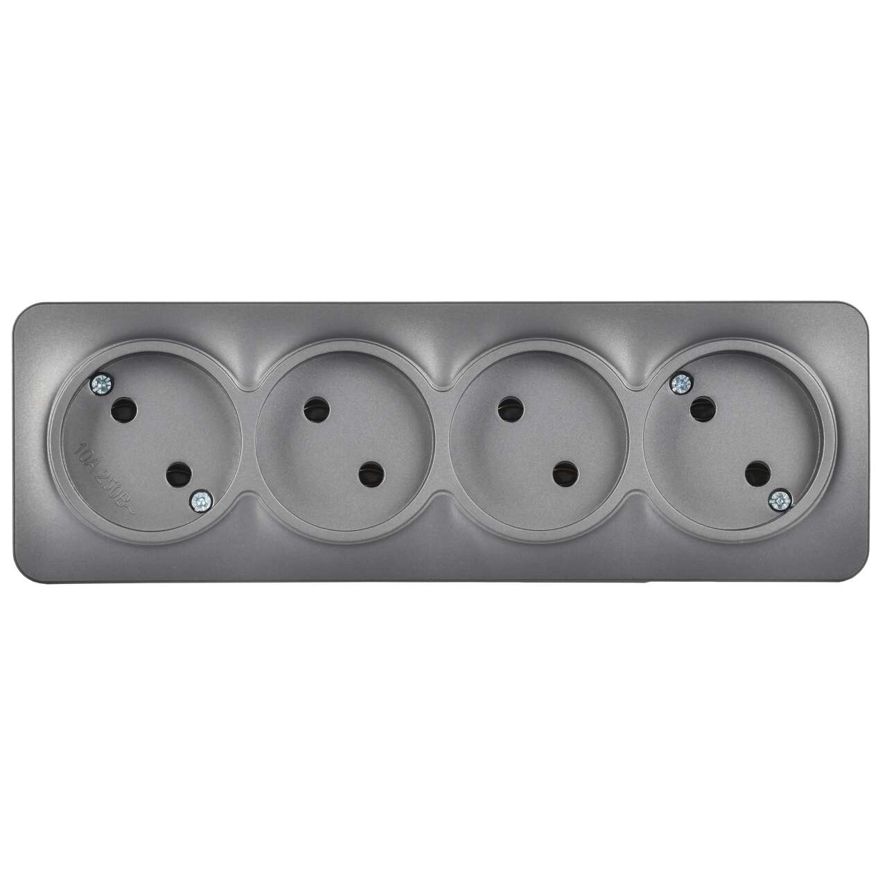 ОформитьGLORY Розетка 4-местная для открытой установки без заземления без защитных шторок 10А РС24-2-ХСм сталь матовый IEK
