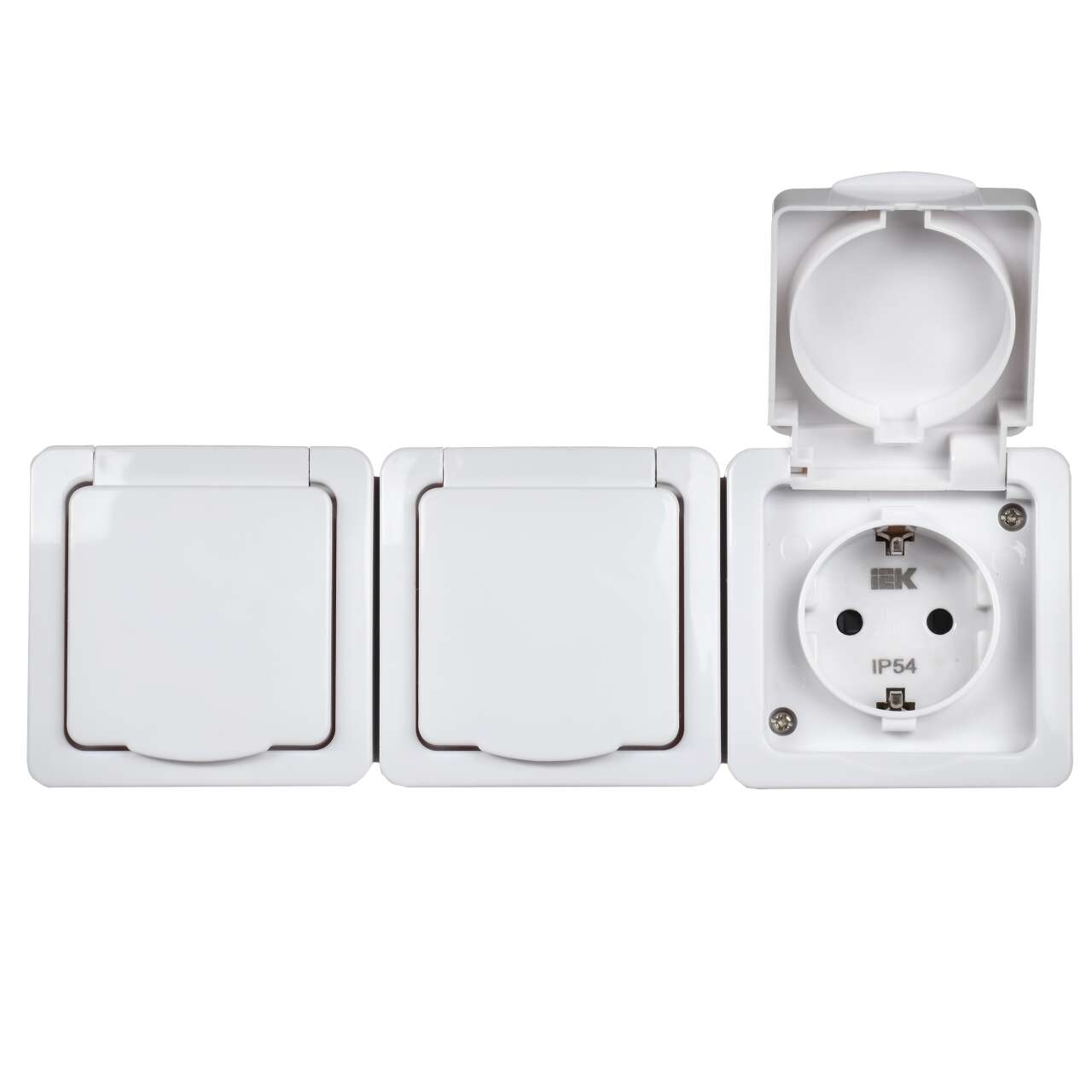 ОформитьРозетка 3-местная для открытой установки РСб23-3-ГПБб с заземляющим контактом IP54 ГЕРМЕС PLUS белый IEK