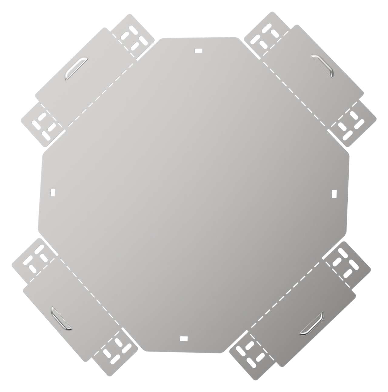 Крестовина предназначен для организации X-образного разветвления кабельной трассы в горизонтальной плоскости. Аксессуар поставляется в плоском виде, имеет направляющую перфорацию для сгиба и сборки изделия перед установкой. Стыковка аксессуара с лотком осуществляется за счёт телескопического соединителя. Подходит для всех типов листовых лотков серии ESCA. Крышка на аксессуар заказывается отдельно. Аксессуар изготовлен из стали оцинкованной методом Сендзимира (защитный слой цинка не менее 5-10 мкм).
