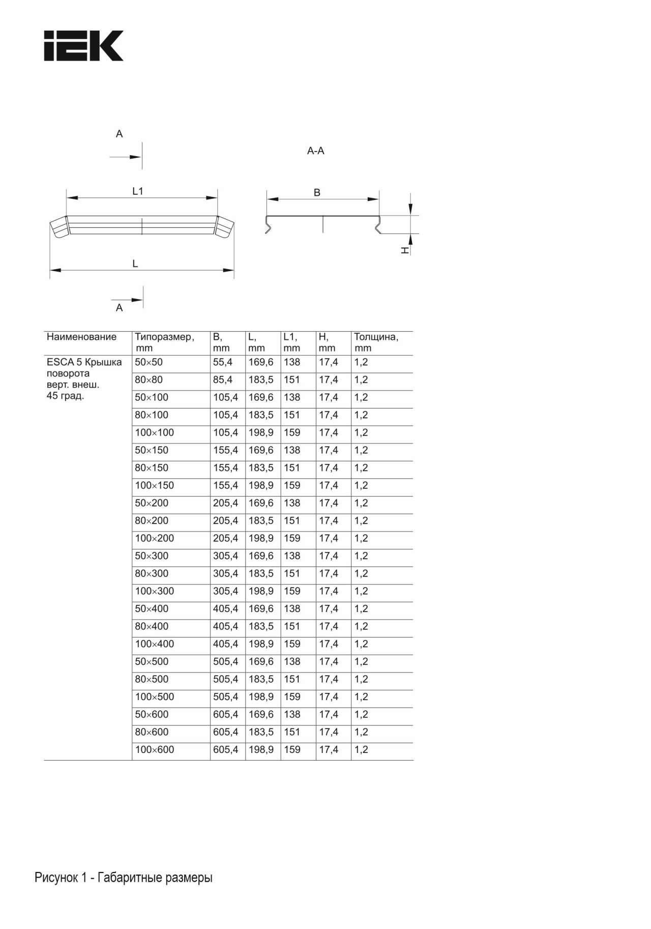 | IEK_F000179 | Толщина металла | 1,2 | мм |