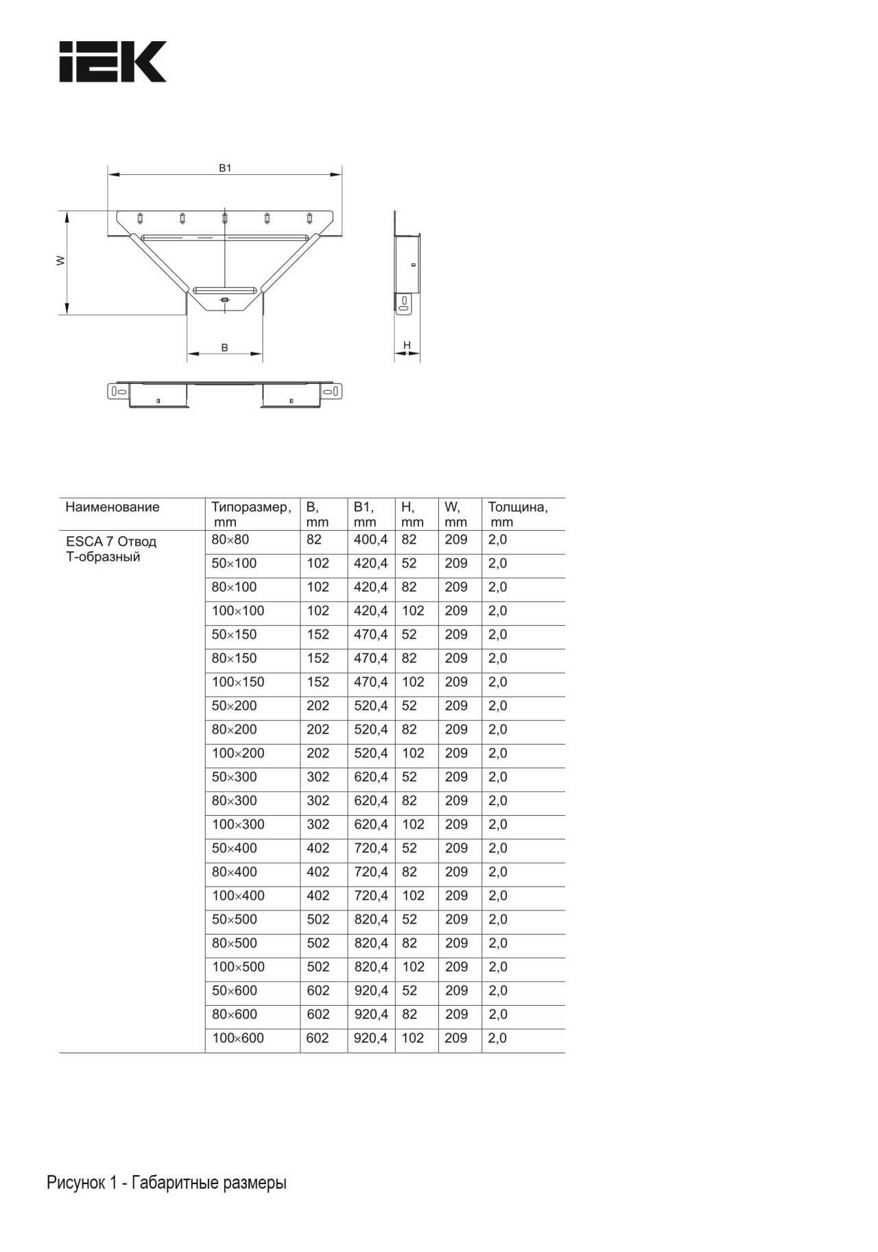 | EF001063 | Ширина ответвления | 80 | мм |